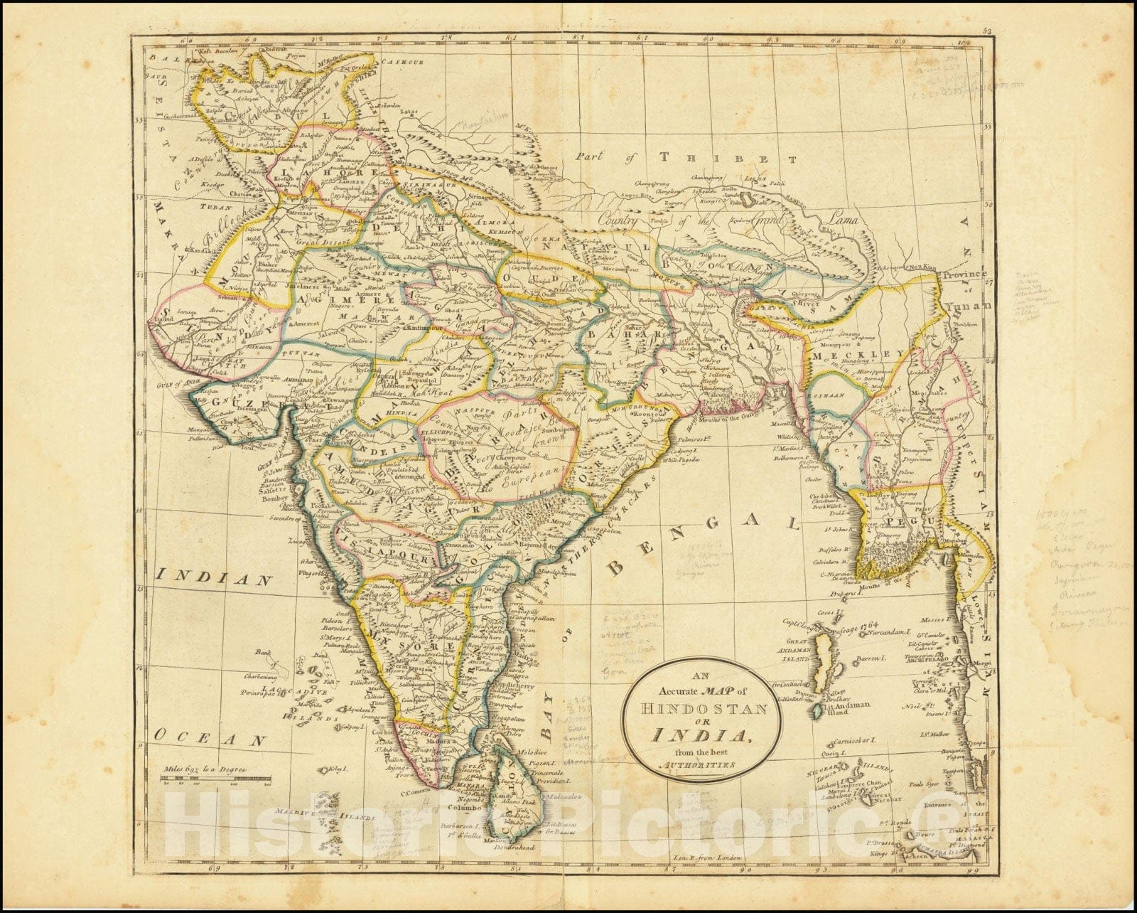 Historic Map : An Accurate Hindostan and India, from the best Authorities, 1795, Vintage Wall Art