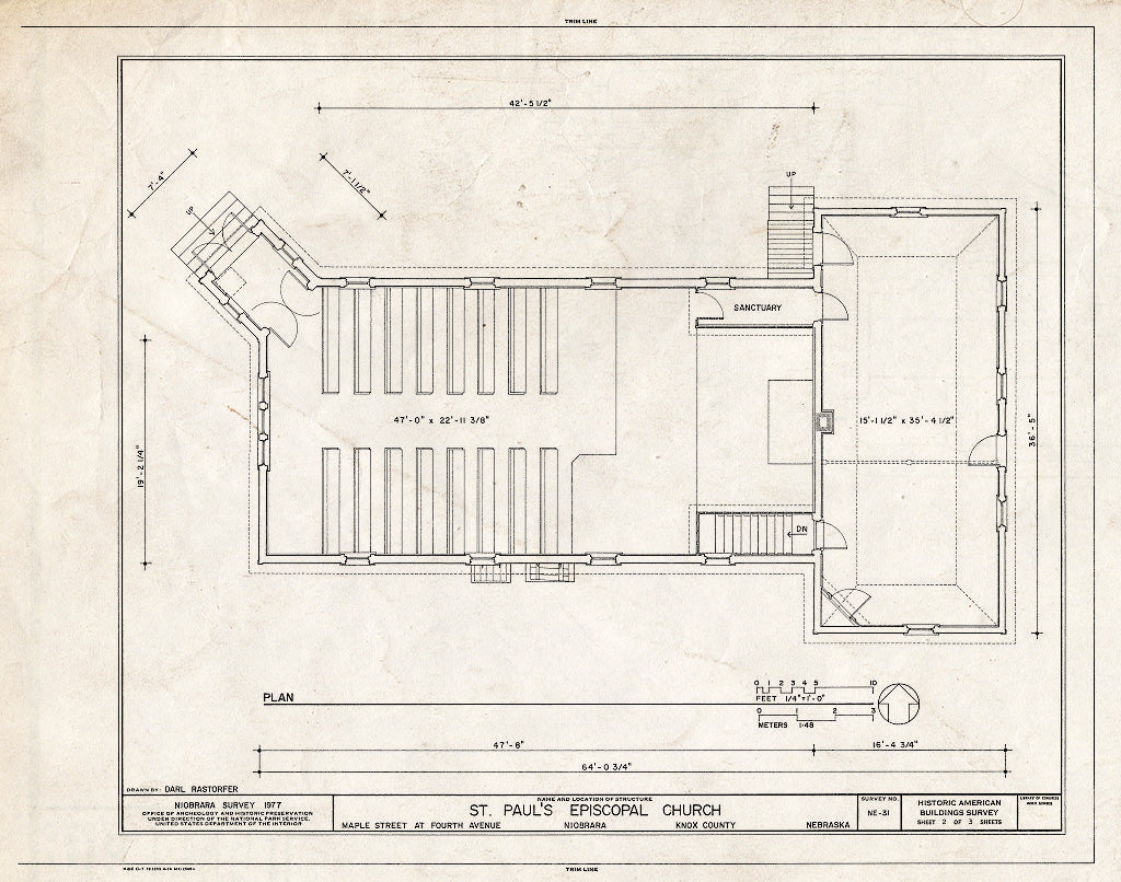 Historic Pictoric : Blueprint HABS NEB,54-NIOB,9- (Sheet 2 of 3) - St. Paul's Episcopal Church, Fourth & Maple Streets (Moved to Santee Indian Reservation, NE), Niobrara, Knox County, NE