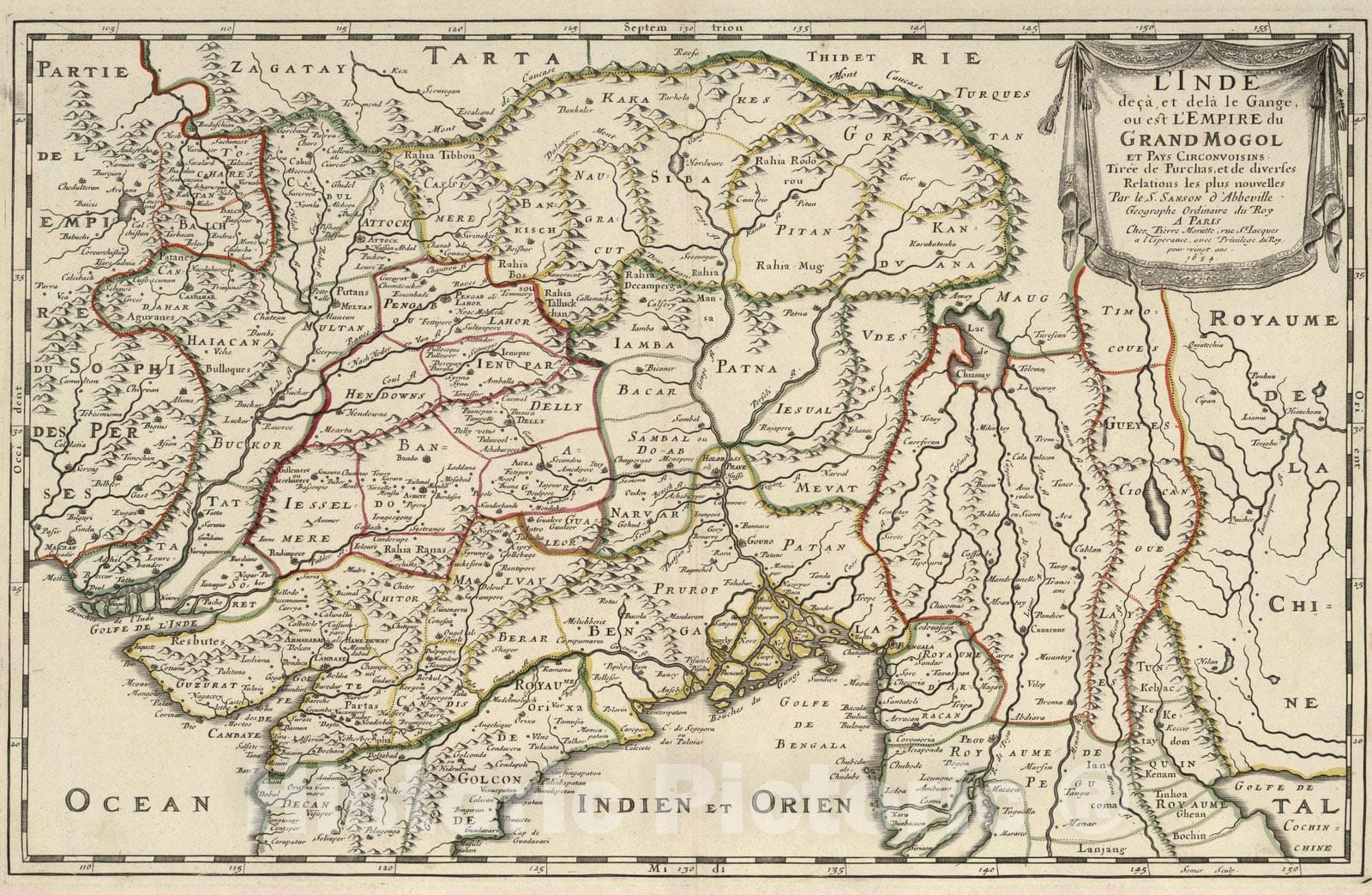 Historic Map : 1654 India below and beyond the Ganges, or the Empire of the Great Mogul. - Vintage Wall Art