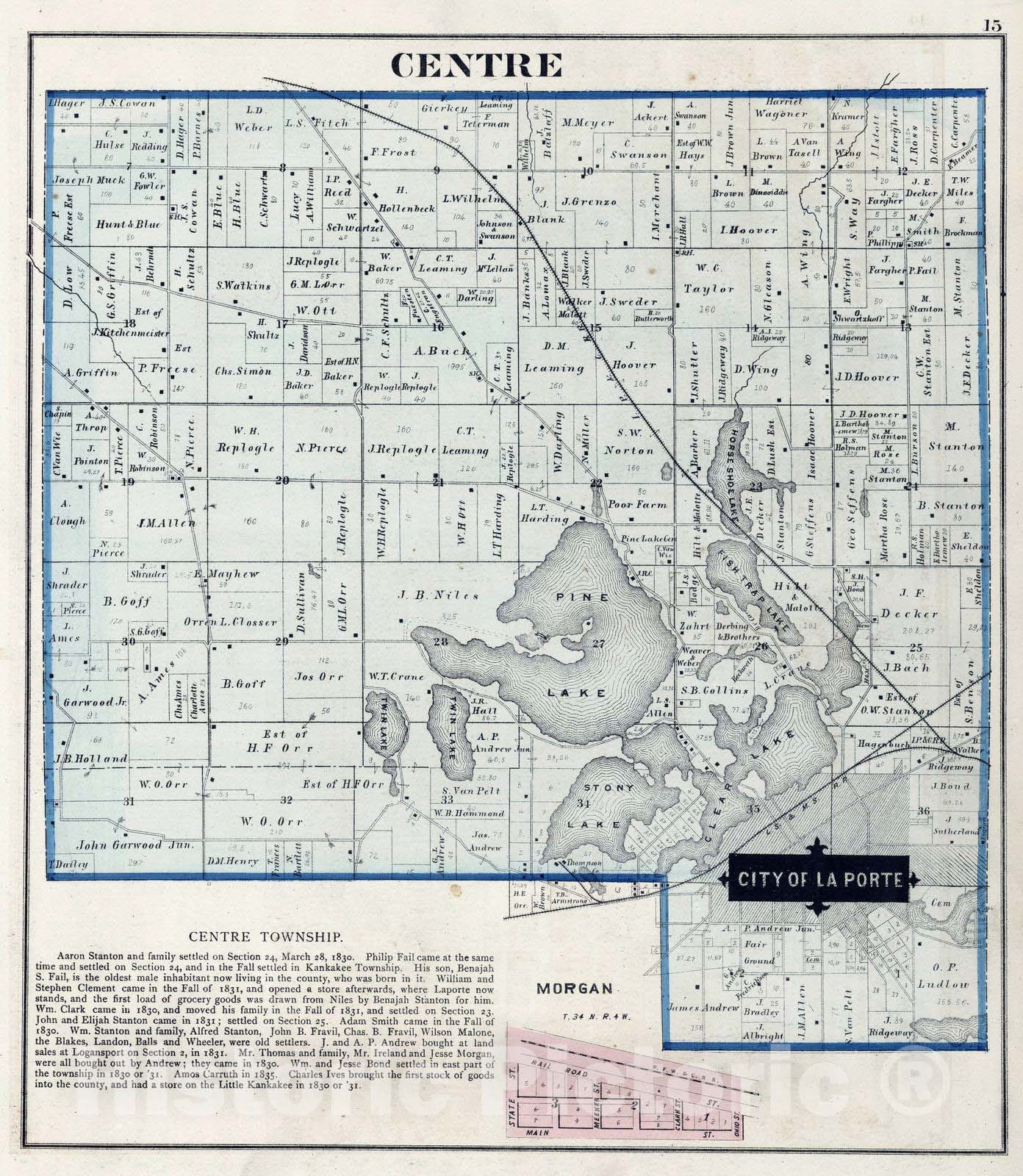 Historic Map : 1874 Centre Township, Laporte County, Indiana. Morgan. - Vintage Wall Art