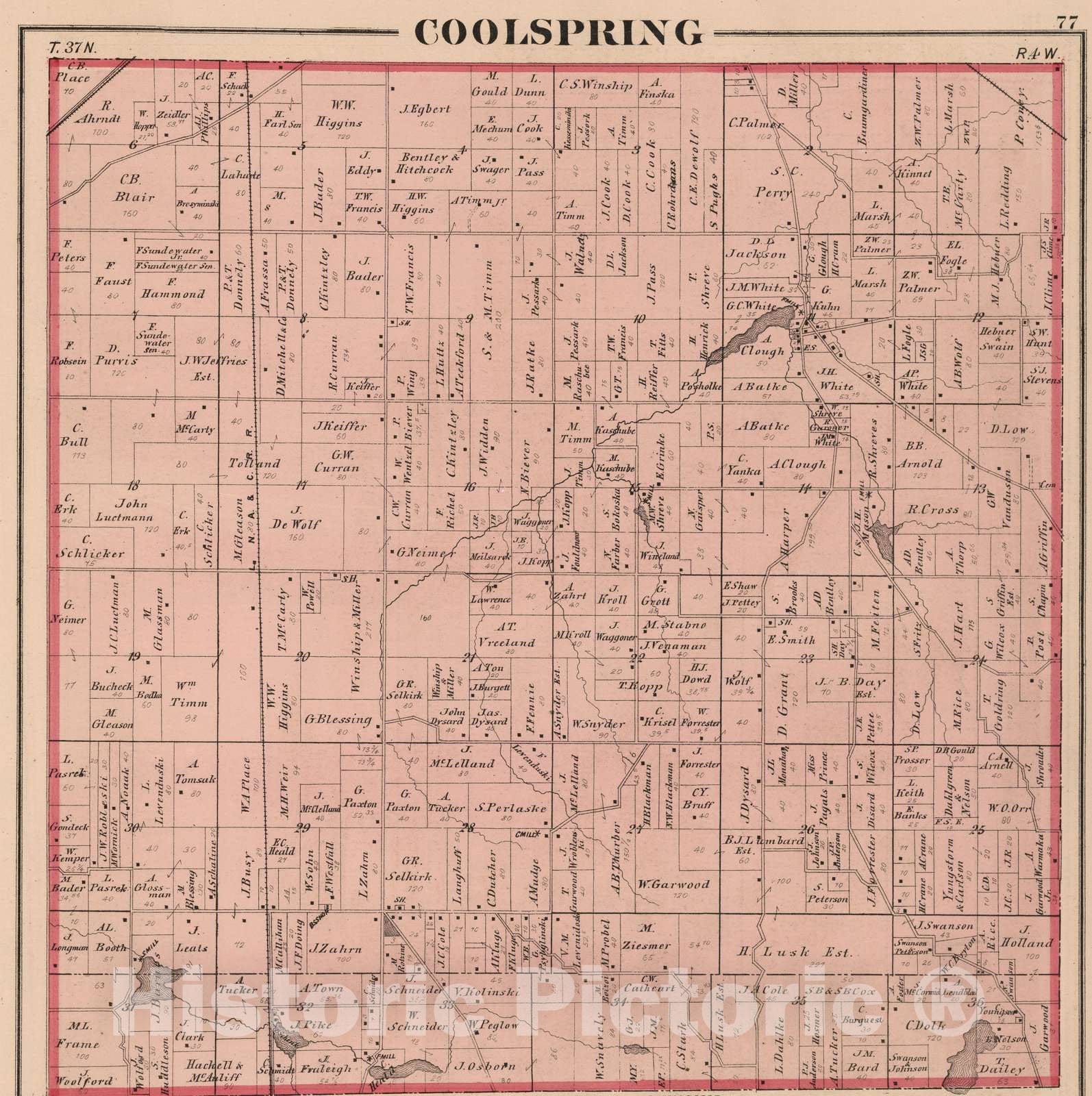 Historic Map : 1874 Coolspring Township, Laporte County, Indiana. - Vintage Wall Art