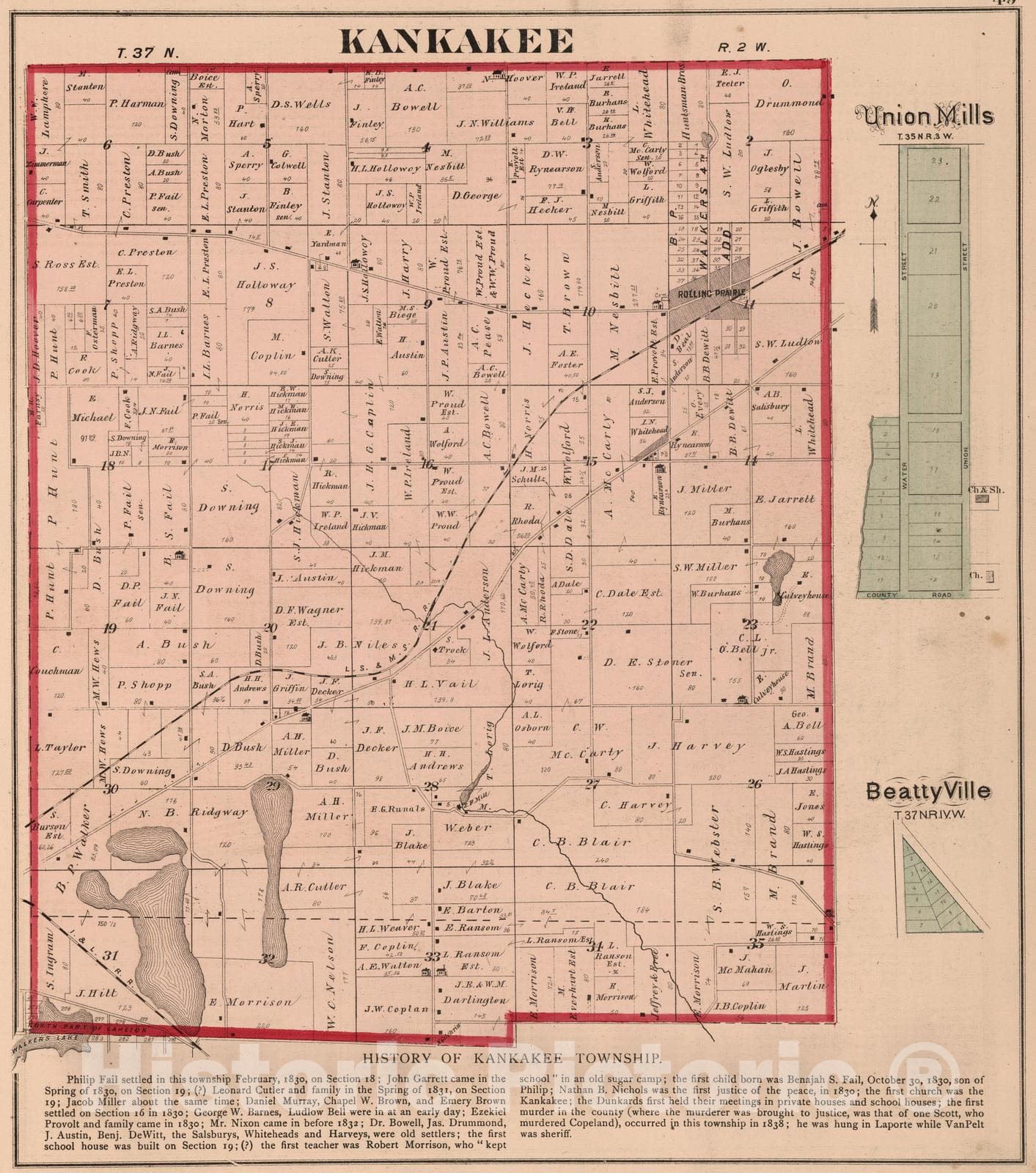 Historic Map : 1874 Kankakee Township, Laporte County, Indiana. - Vintage Wall Art