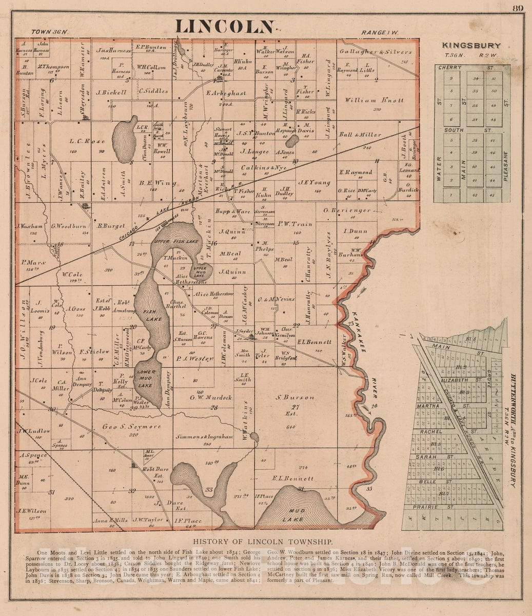 Historic Map : 1874 Lincoln Township, Laporte County, Indiana. - Vintage Wall Art