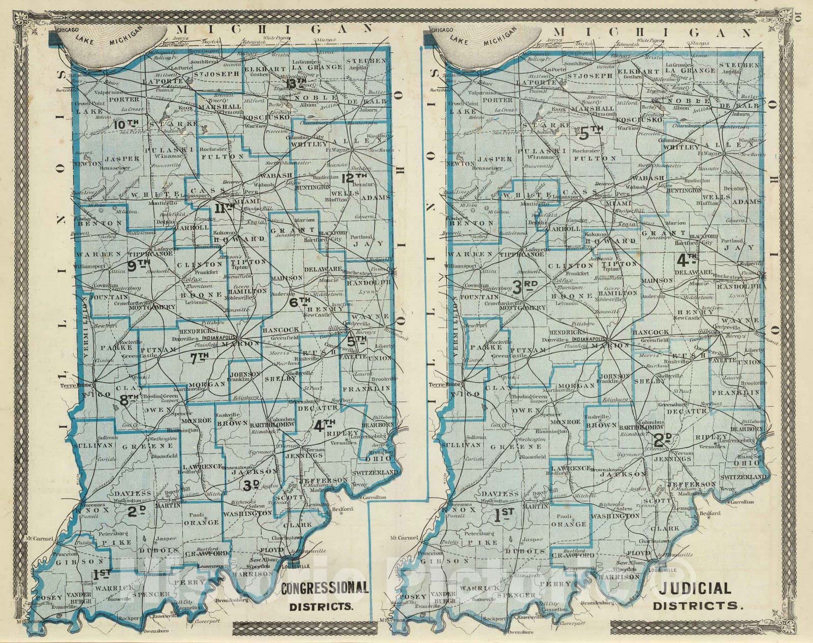 Historic Map : 1876 Congressional districts. Judicial districts (Indiana) - Vintage Wall Art