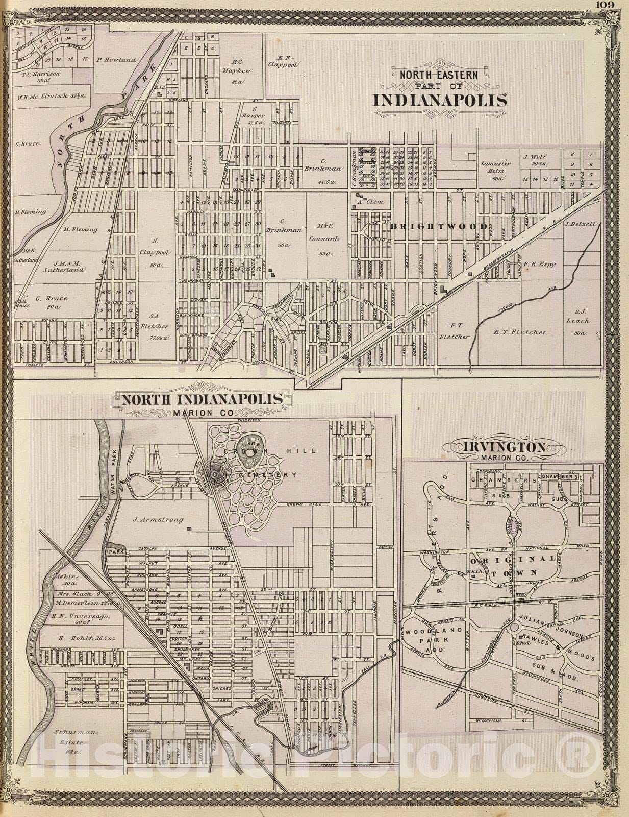 1876 Northern-eastern part of Indianapolis. (with) North Indianapolis, Irvington.