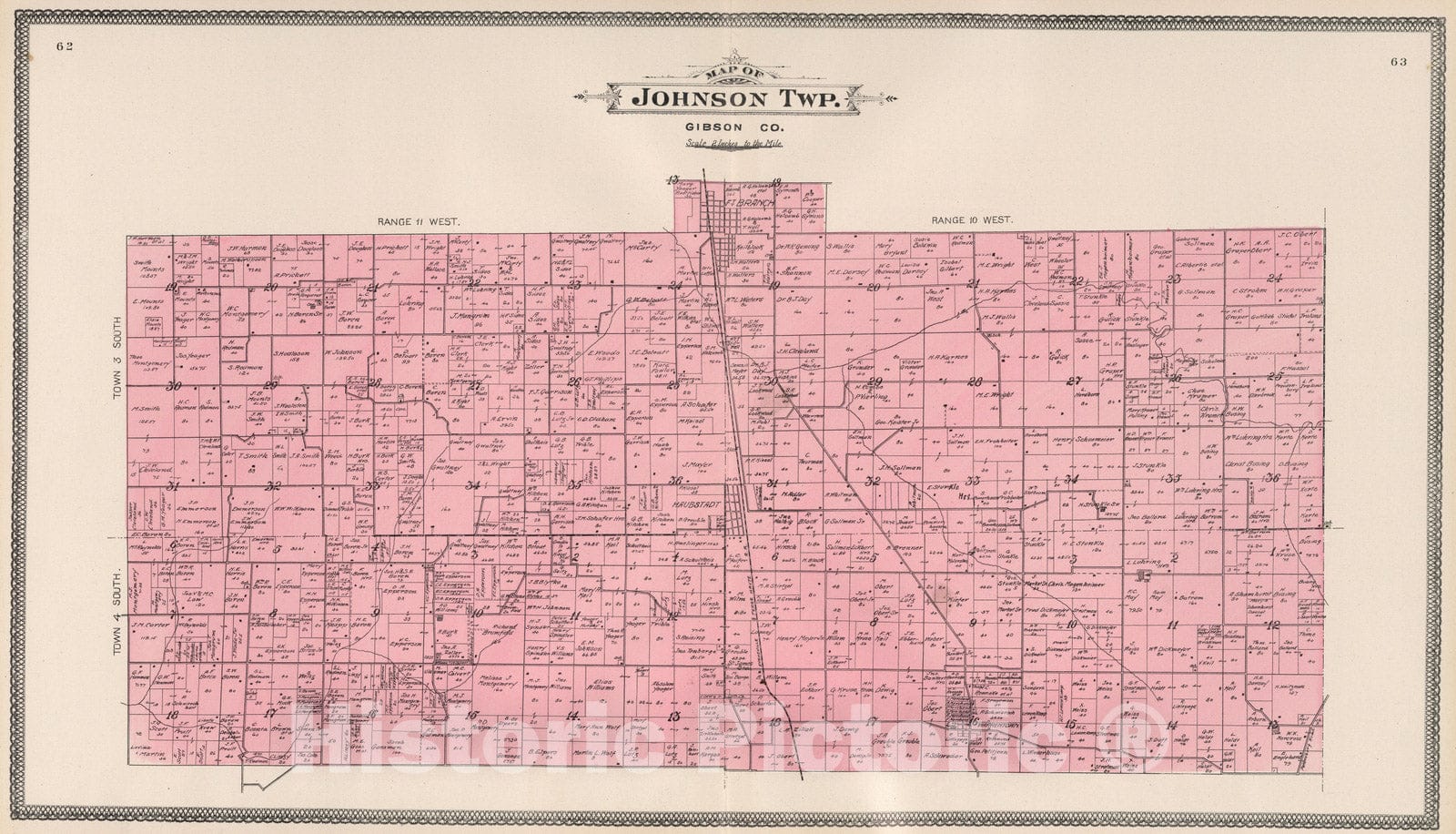Historic Map : 1899 Johnson Township, Gibson County, Indiana. - Vintage Wall Art