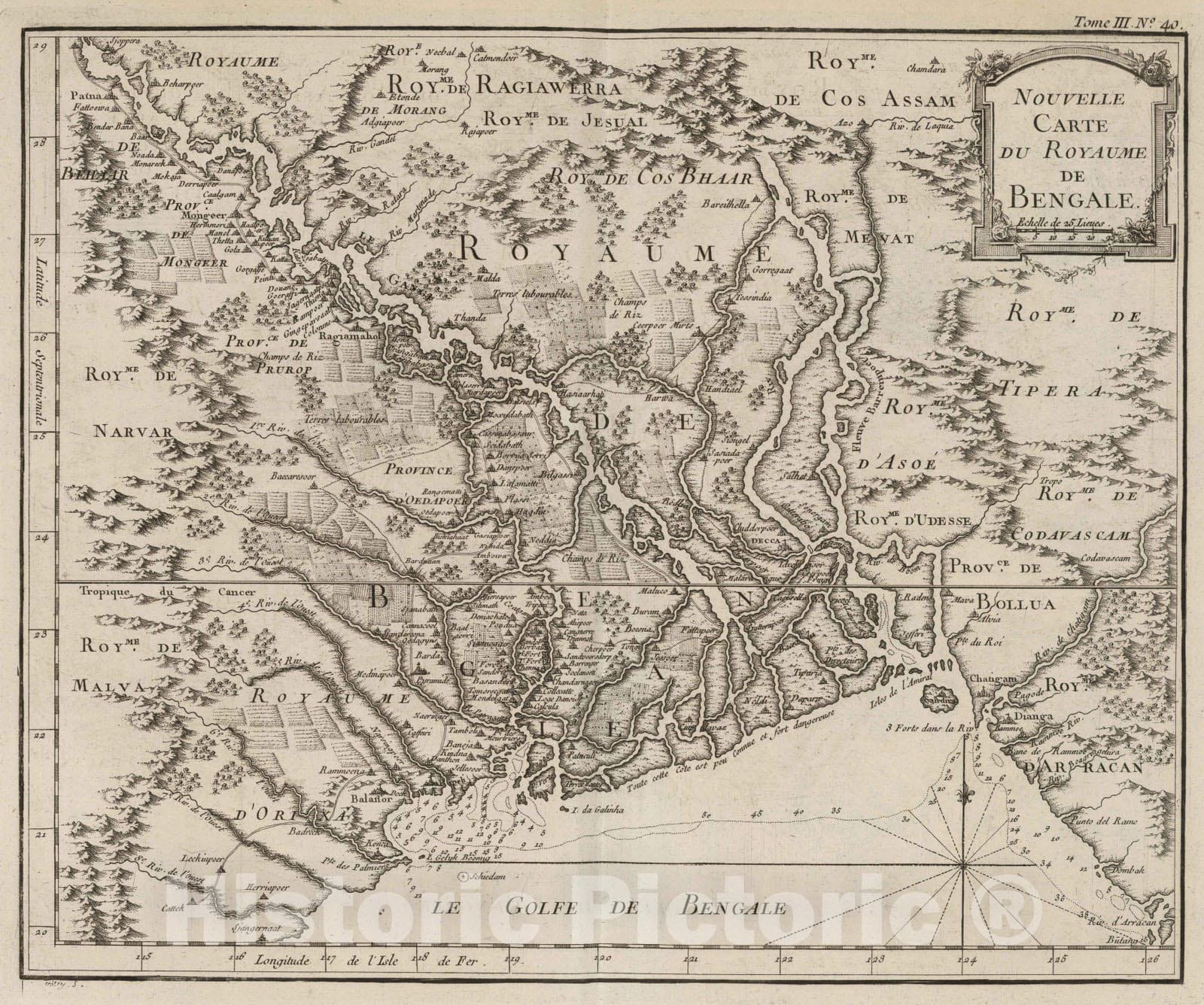 Historic Map : India; Bangladesh, 1764 Nouvelle carte du royaume de Bengale , Vintage Wall Art