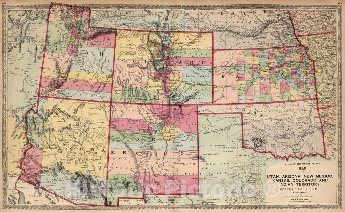 National Atlas - 1872 Utah, Arizona, New Mexico, Kansas, Colorado, and Indian Territory.