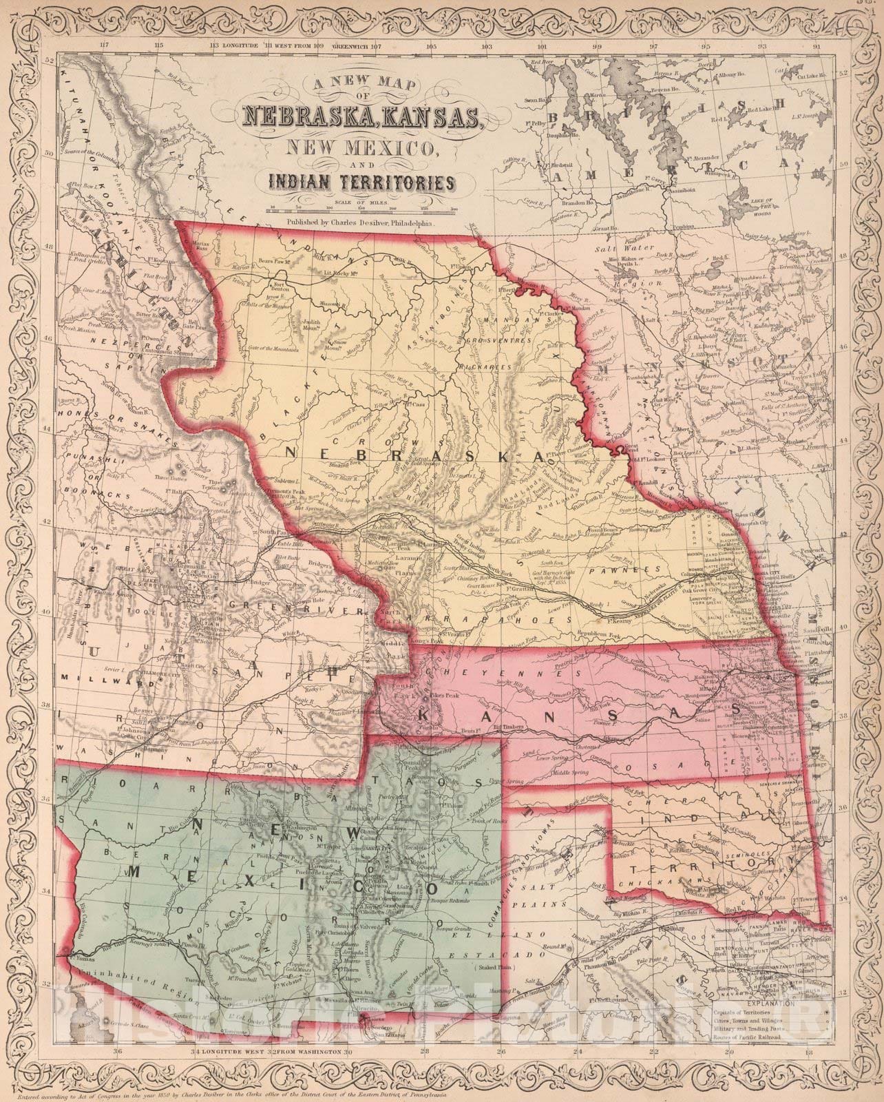 Historic Map : A New Map of Nebraska, Kansas, New Mexico, and Indian Territories, 1859 - Vintage Wall Art