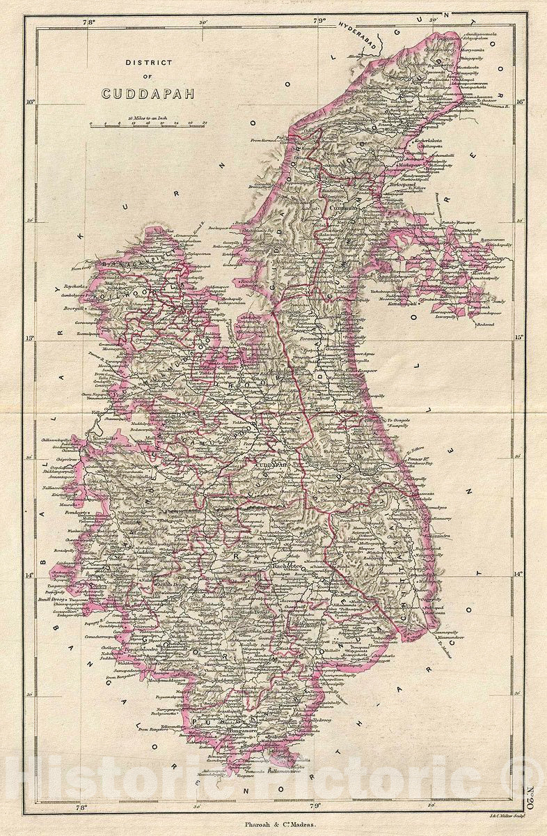 • Historic Map : Pharoah and Company Map of The Cuddapah District of Kadapa in Andhra Pradesh, India, 1854, Vintage Wall Art