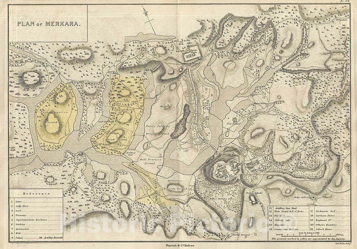• .Historic Map : Pharoah Map or Plan of Madikeri or Mercara, Karnataka, India, 1854, Vintage Wall Art
