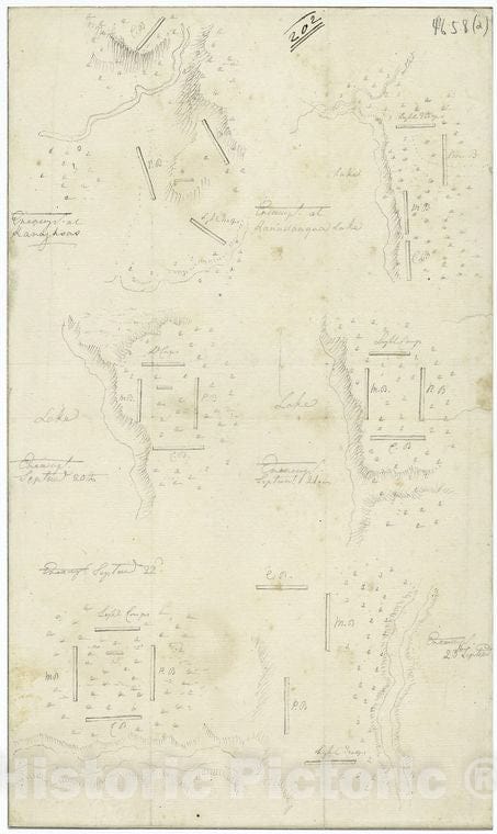 Historic Map - Map Plans Of The Various Encampments Of Sullivan'S Army In The Expedition Against The Indians (1779). - United States