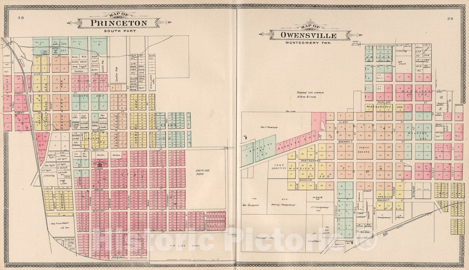 Historic Map : Princeton, South Part. Map of Owensville, Montgomery Township, Gibson County, Indiana., 1899, Vintage Wall Art
