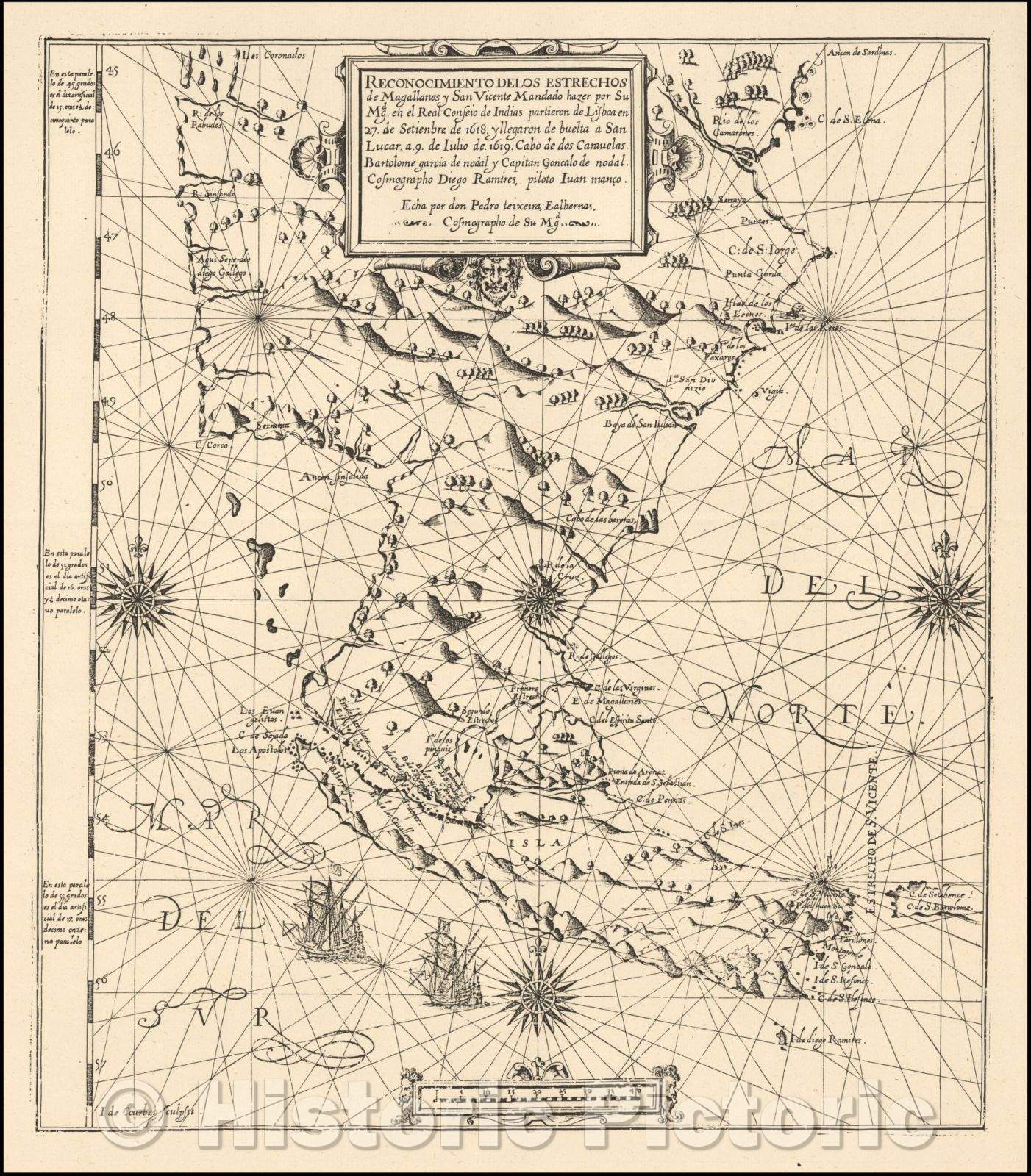 Historic Map - Reconocimiento De Los Estrechos de Magallanes y San Vicente Mandado hazer por Su Mdg. en el Real Conseio de Indias partieron de Lisboa, 1621 v2