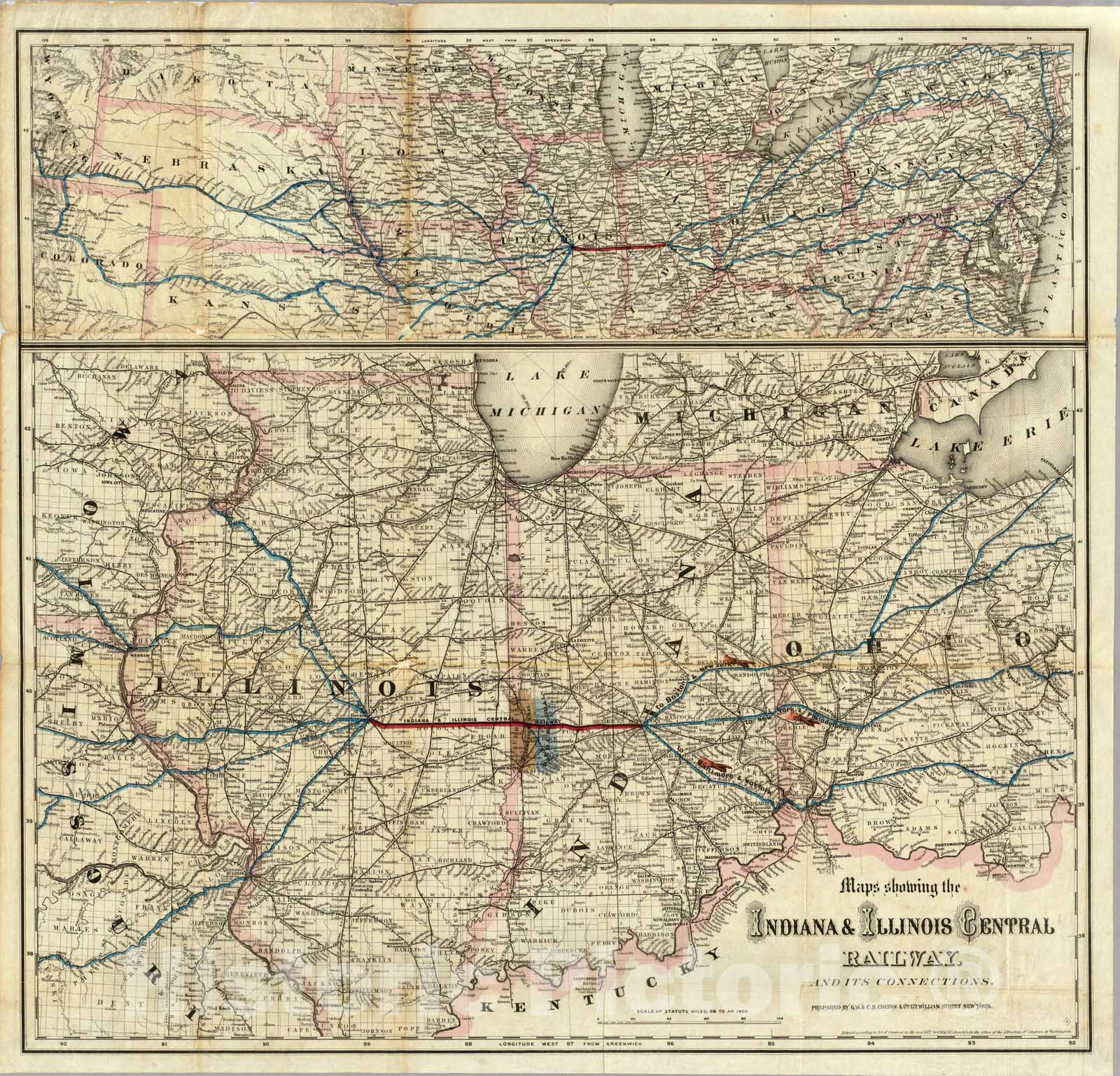 Historic Wall Map : Maps showing the Indiana & Illinois Central Railway, 1872 - Vintage Wall Art