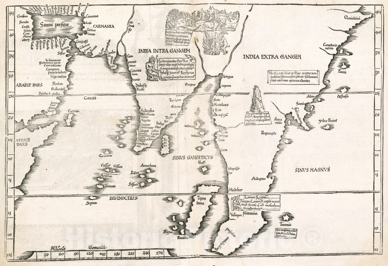 Historical Map, 1525 Tab. moderna Indiae, Vintage Wall Art