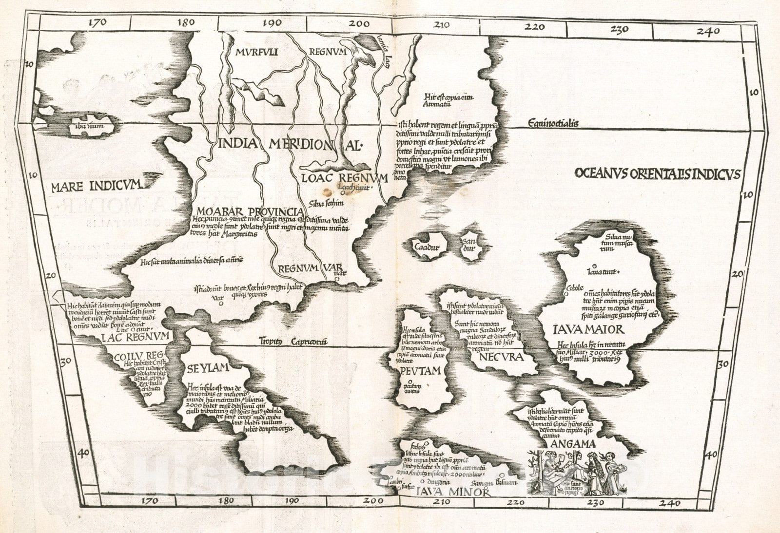 Historical Map, 1525 Tabula moder. Indiae Orientalis, Vintage Wall Art