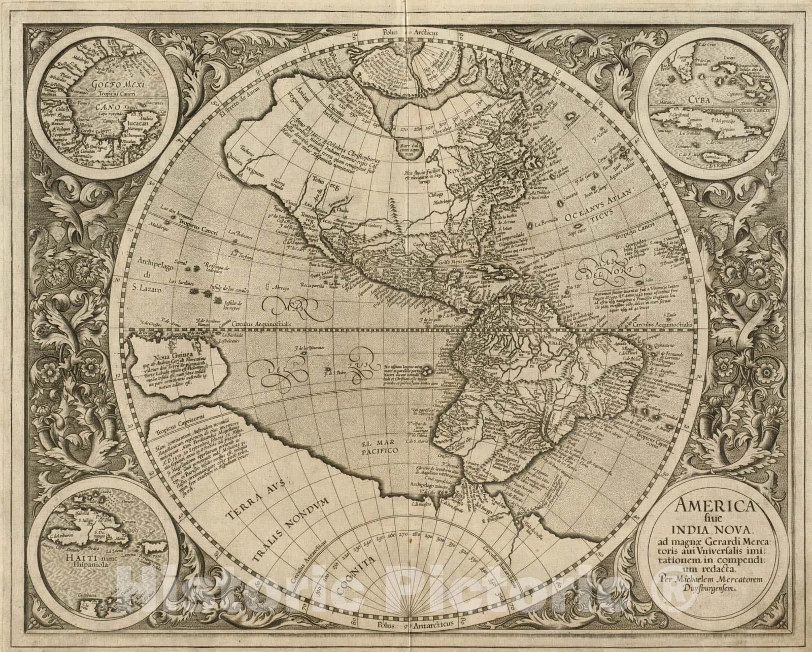 Historical Map, 1595 America sive India Nova : ad magnae Gerardi Mercatoris aui universalis imitationem in Compendium redacta, Vintage Wall Art