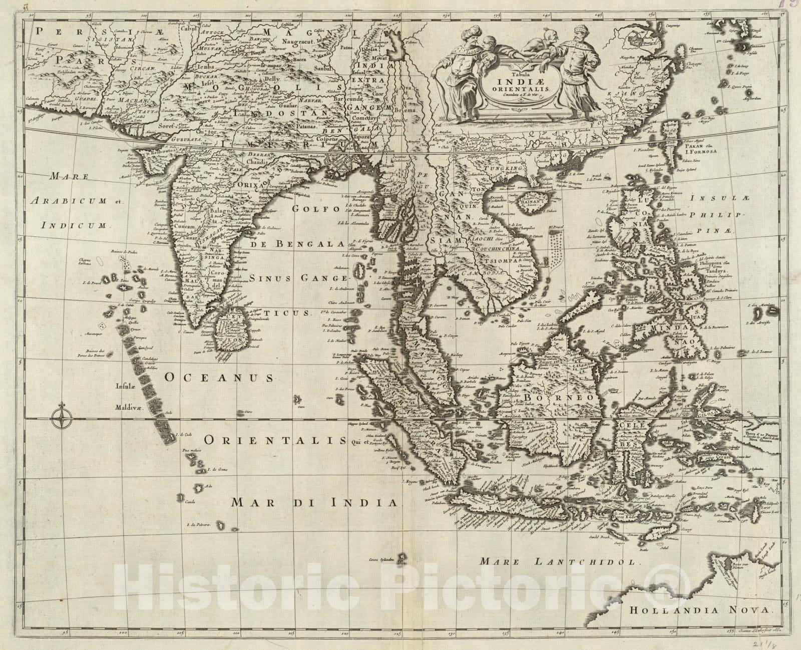 Historical Map, 1662 Tabula Indiae orientalis, Vintage Wall Art