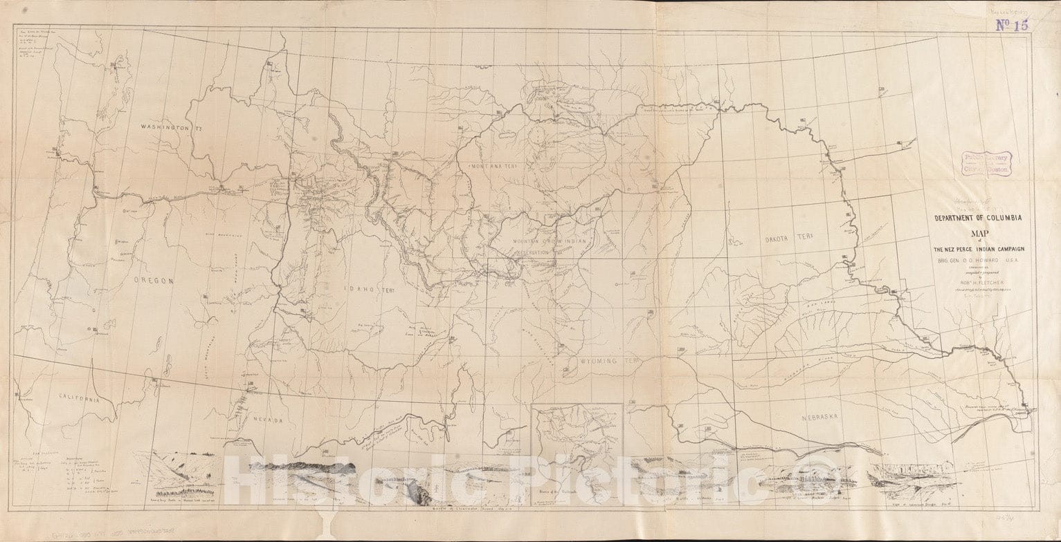 Historical Map, 1877 Map of the Nez Perce Indian campaign Brig. Gen. O. O. Howard commanding, Vintage Wall Art