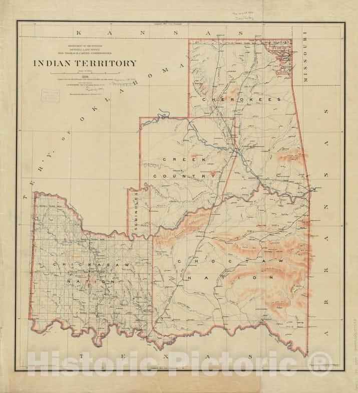 Historical Map, 1891 Indian Territory, Vintage Wall Art