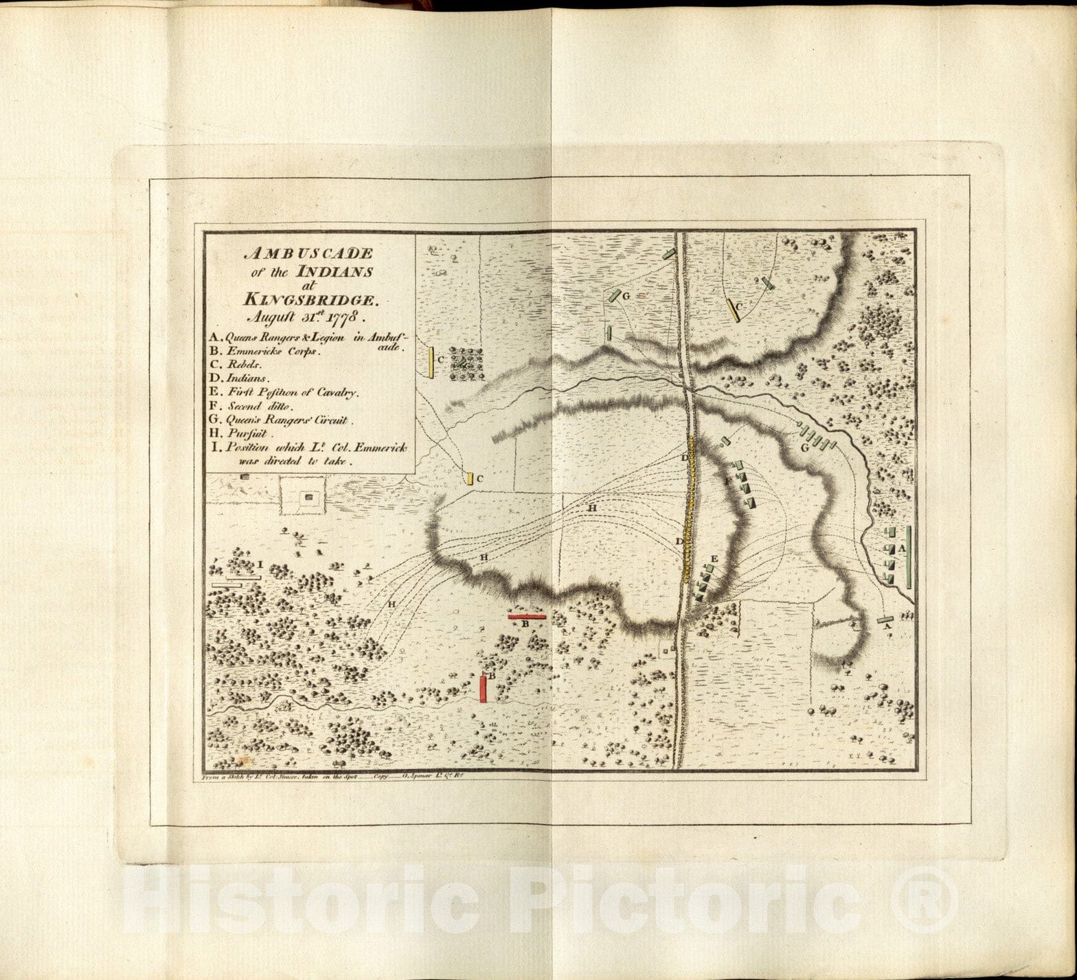 • .Historical Map, Ambuscade of The Indians at Kingsbridge : August 31st. 1778, Vintage Wall Art