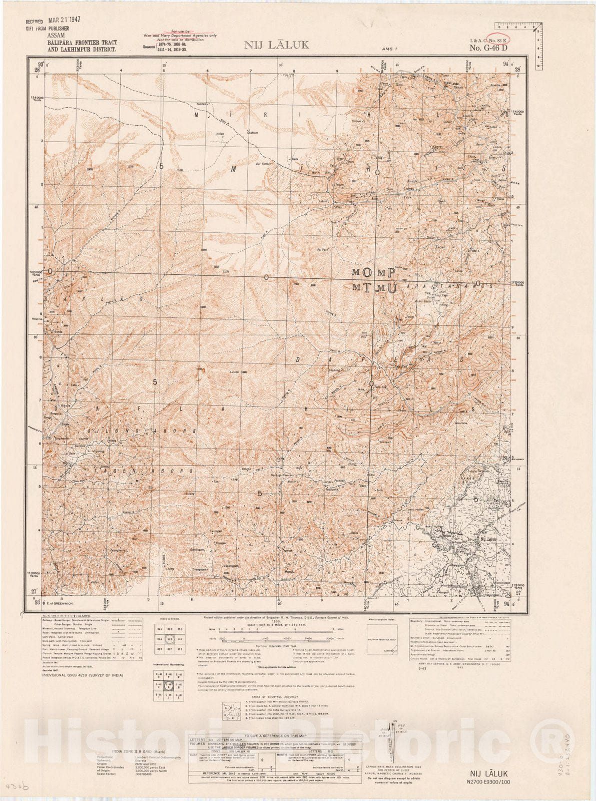 Map : Assam, Balipara Frontier Tract and Lakhimpur District, Nij Laluk, No. 83 E 1942, India 1:253,440, Antique Vintage Reproduction