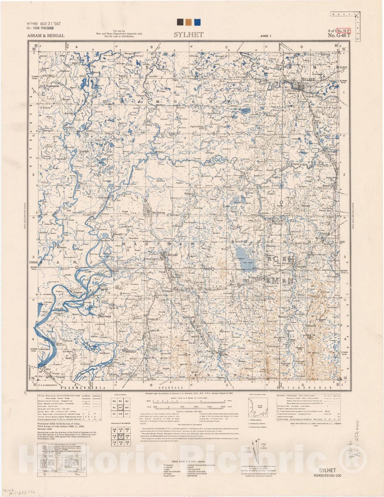 Map : Assam & Bengal, Sylhet, No. 78 P 1944, India 1:253,440, Antique Vintage Reproduction