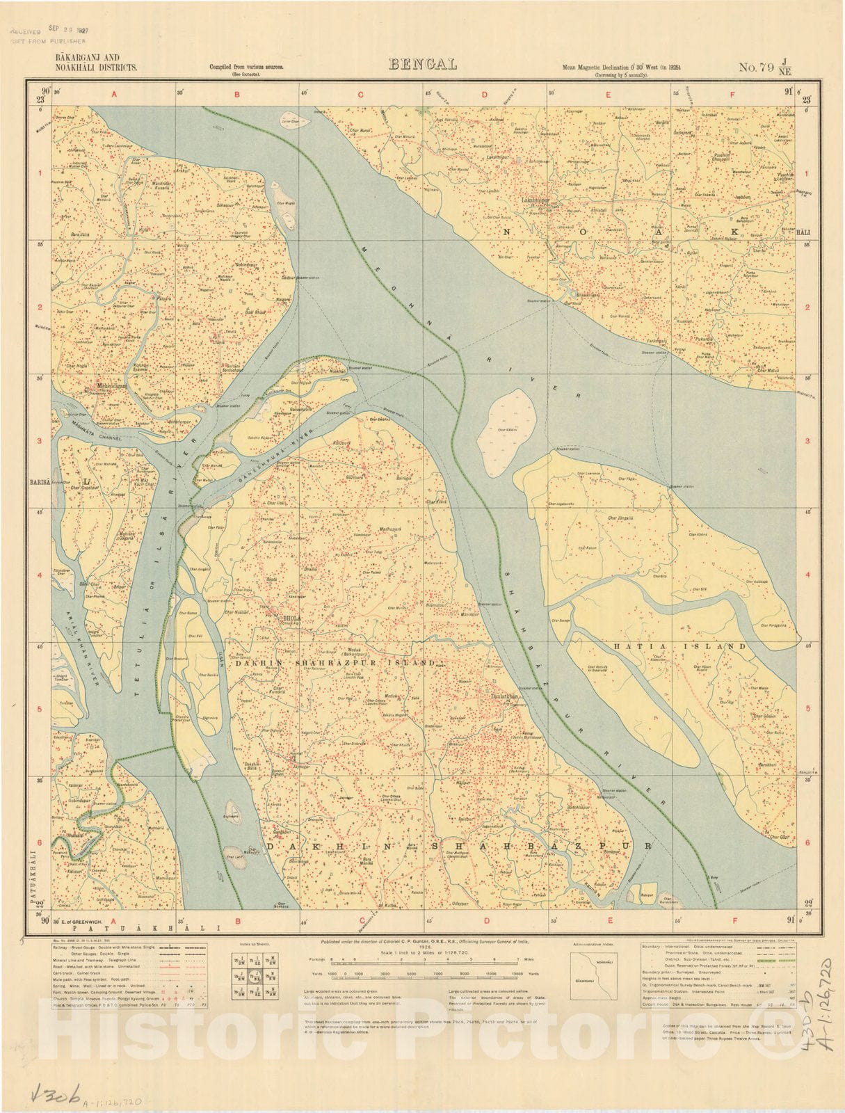 Map : Bakarganj and Moakhali Districts, Bengal, No. 79 I/N.E. 1926, India and adjacent countries, Antique Vintage Reproduction