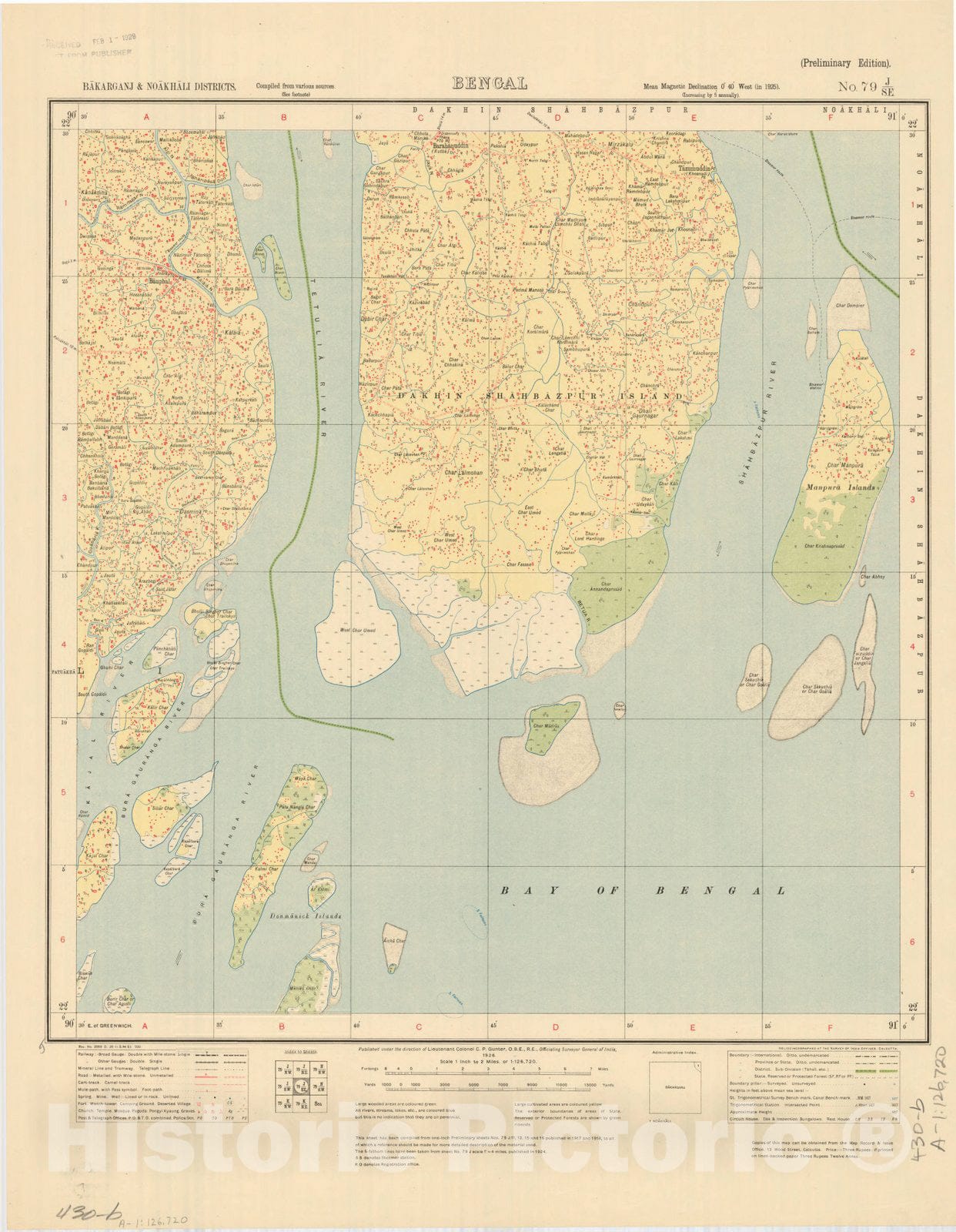 Map : Bakarganj & Noakhali Districts, Bengal, No. 79 J/S.E. 1926, India and adjacent countries, Antique Vintage Reproduction