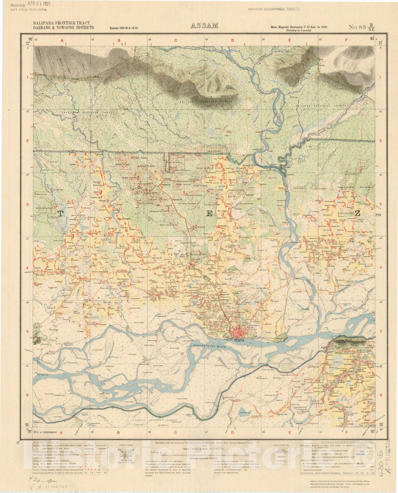 • .Map : Balipara Frontier Tract, Darrang & Nowgong Districts, Assam, No. 83 B/N.E. 1919, India and adjacent countries, Antique Vintage Reproduction