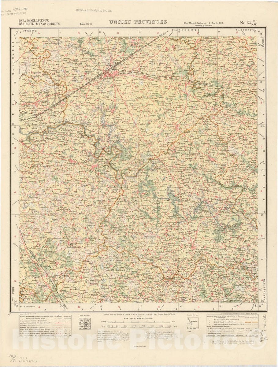 Map : Bara Banki, Lucknow, Rae Bareli & Unao Districts, United Provinces, No. 63 F/N.W. 1921, India and adjacent countries, Antique Vintage Reproduction