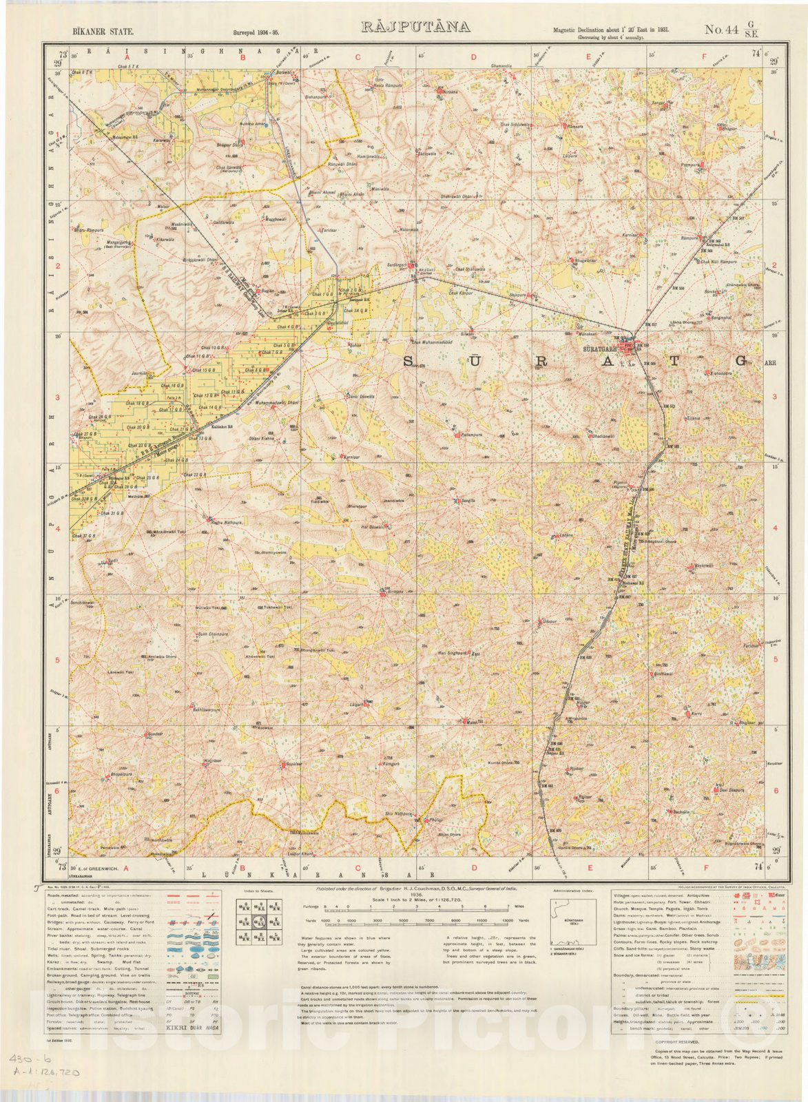Map : Bikaner State, Rajputana No. 44 G/S.E. 1936, India 1:126,720, Antique Vintage Reproduction