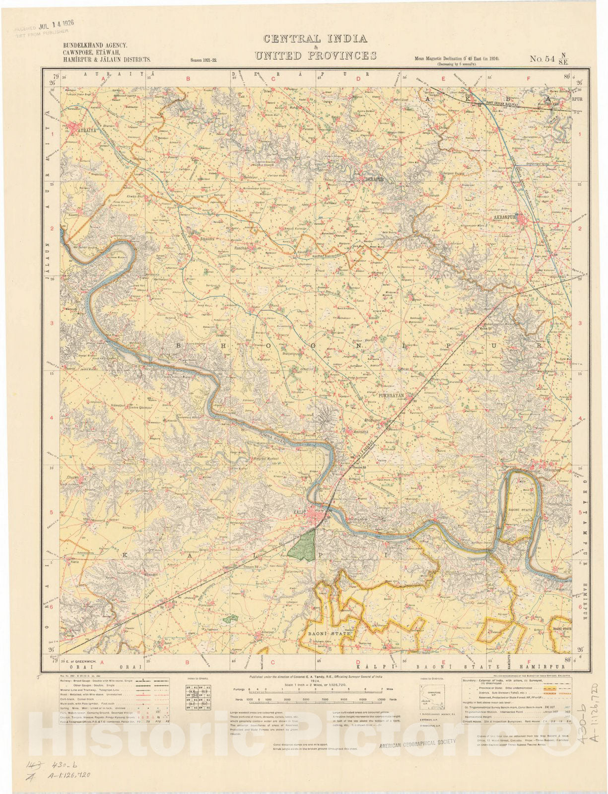 Map : Bundelkhand Agency, Cawnpore, Etawah, Hamirpur & Jalaun Districts, Central India & United Provinces, No. 54 N/S.E. 1924, India and adjacent countries