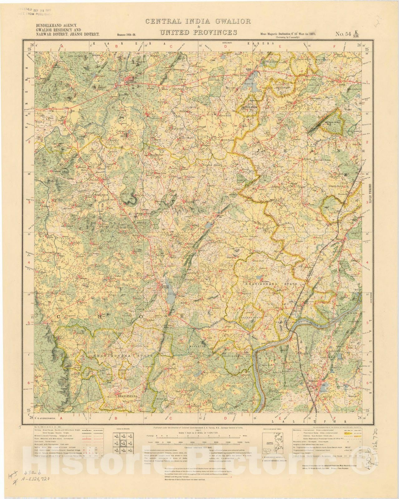 Historic Map : Bundelkhand Agency, Gwalior Residency and Narwar District, Jhansi District, Central India, Gwalior & United Provinces, No. 54 K/S.W. 1927, India and adjacent countries
