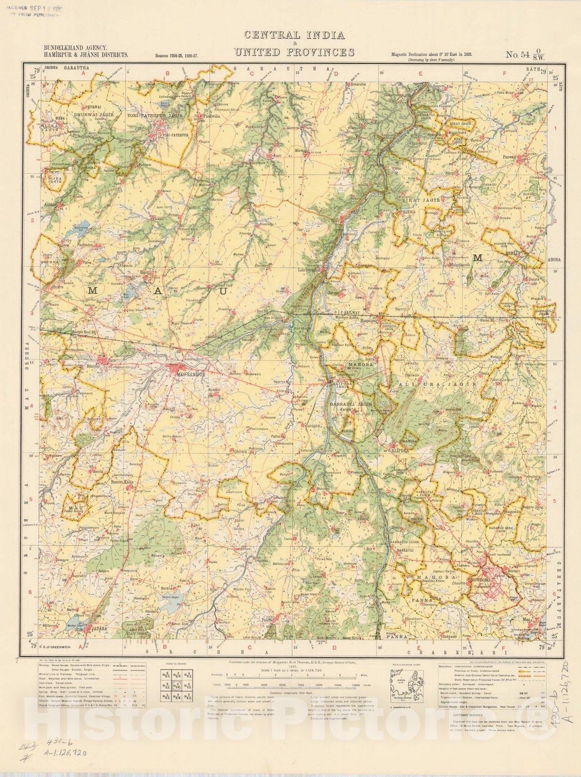 Map : Bundelkhand Agency, Hamirpur & Jhansi Districts, Central India & United Provinces, No. 54 O/S.W. 1931, India and adjacent countries, Antique Vintage Reproduction