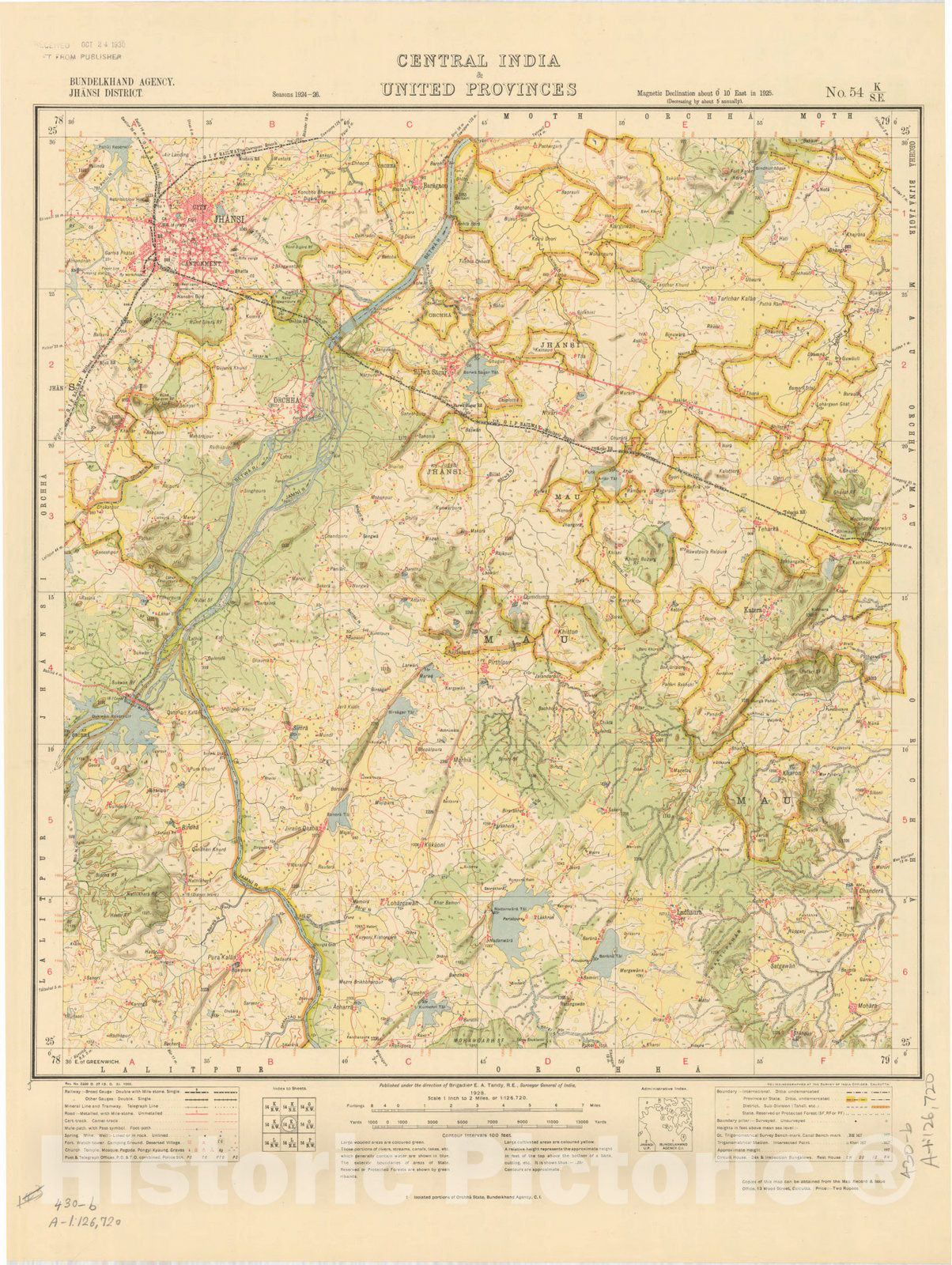 Map : Bundelkhand Agency, Jhansi District, Central India & United Provinces, No. 54 K/S.E. 1928, India and adjacent countries, Antique Vintage Reproduction