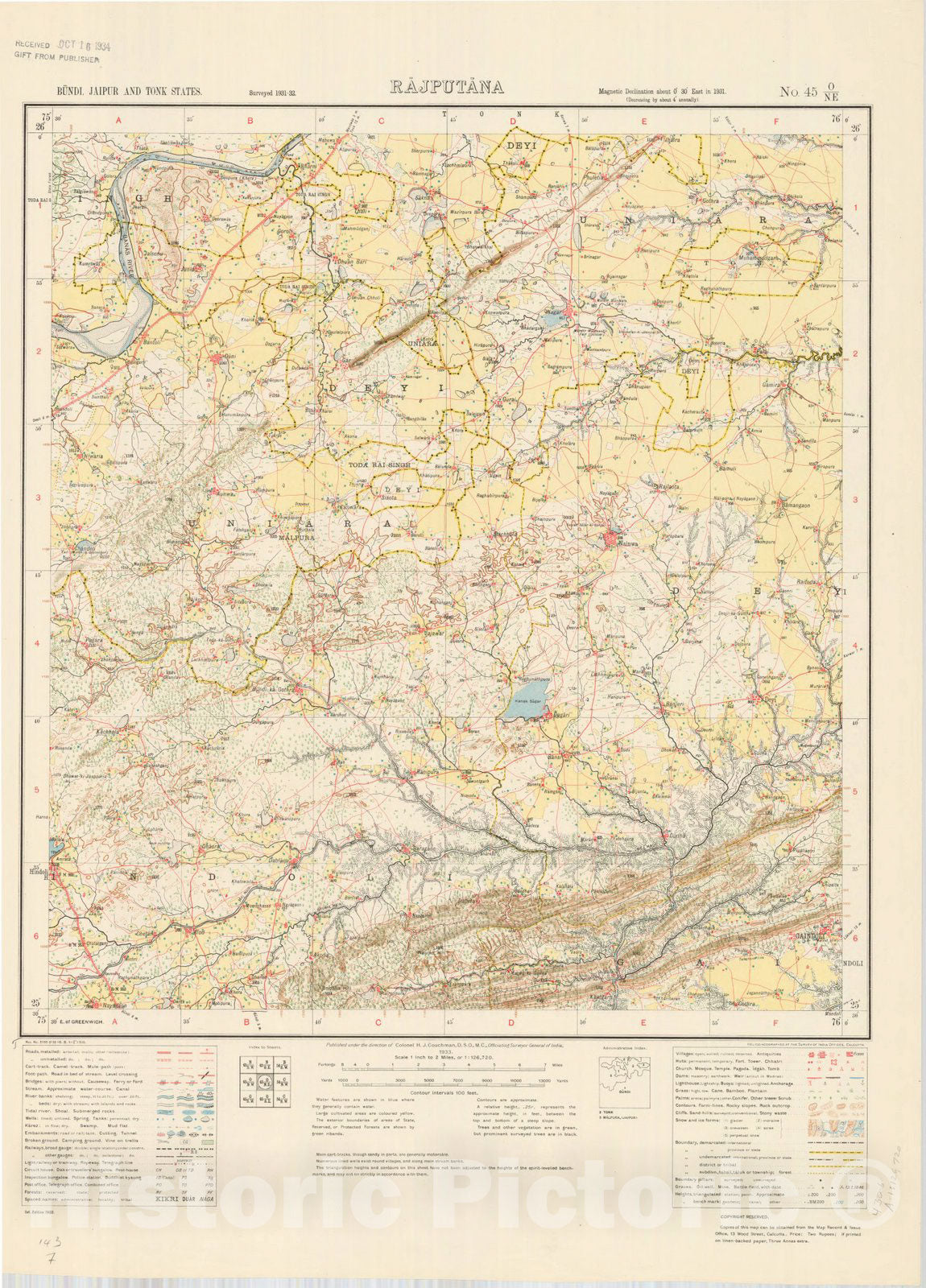 Map : Bundi,Jaipur and Tonk States, Rajputana, No. 45 O/N.E. 1933, India and adjacent countries, Antique Vintage Reproduction