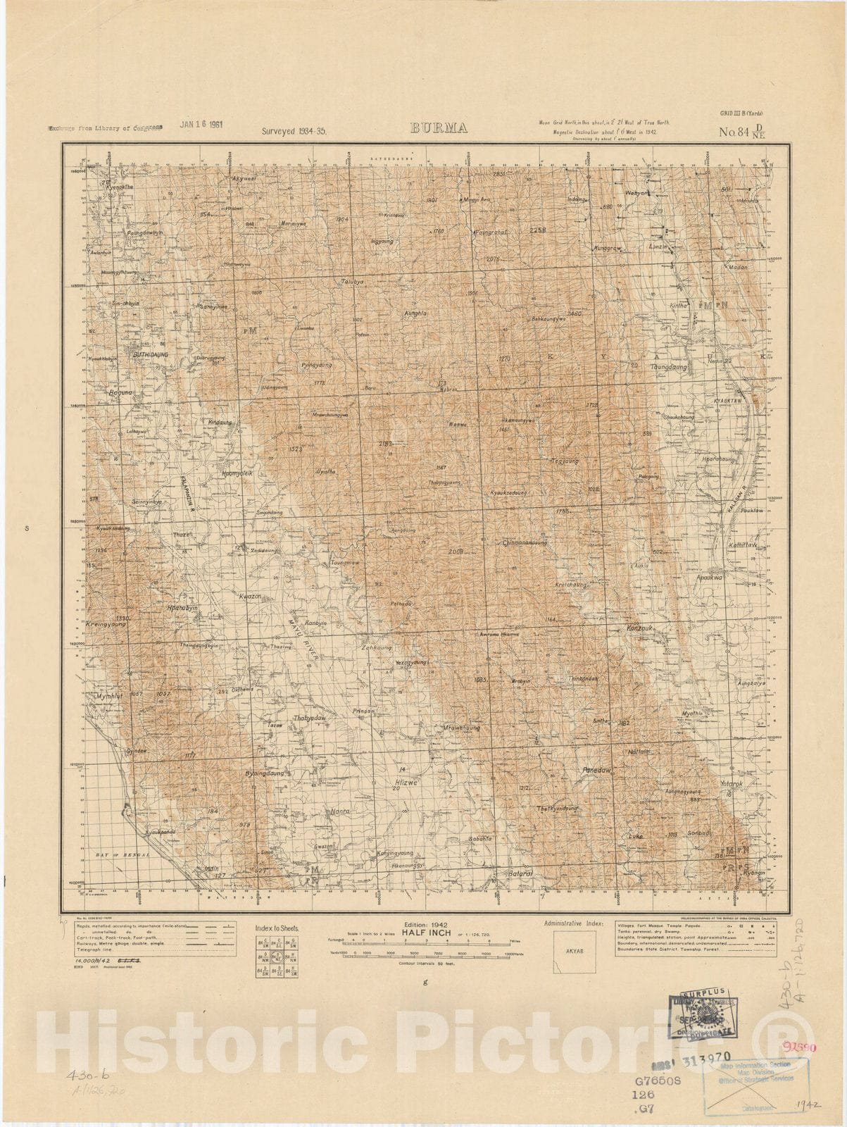 Map : Burma No. 84 D/N.E. 1942, India and adjacent countries, Antique Vintage Reproduction
