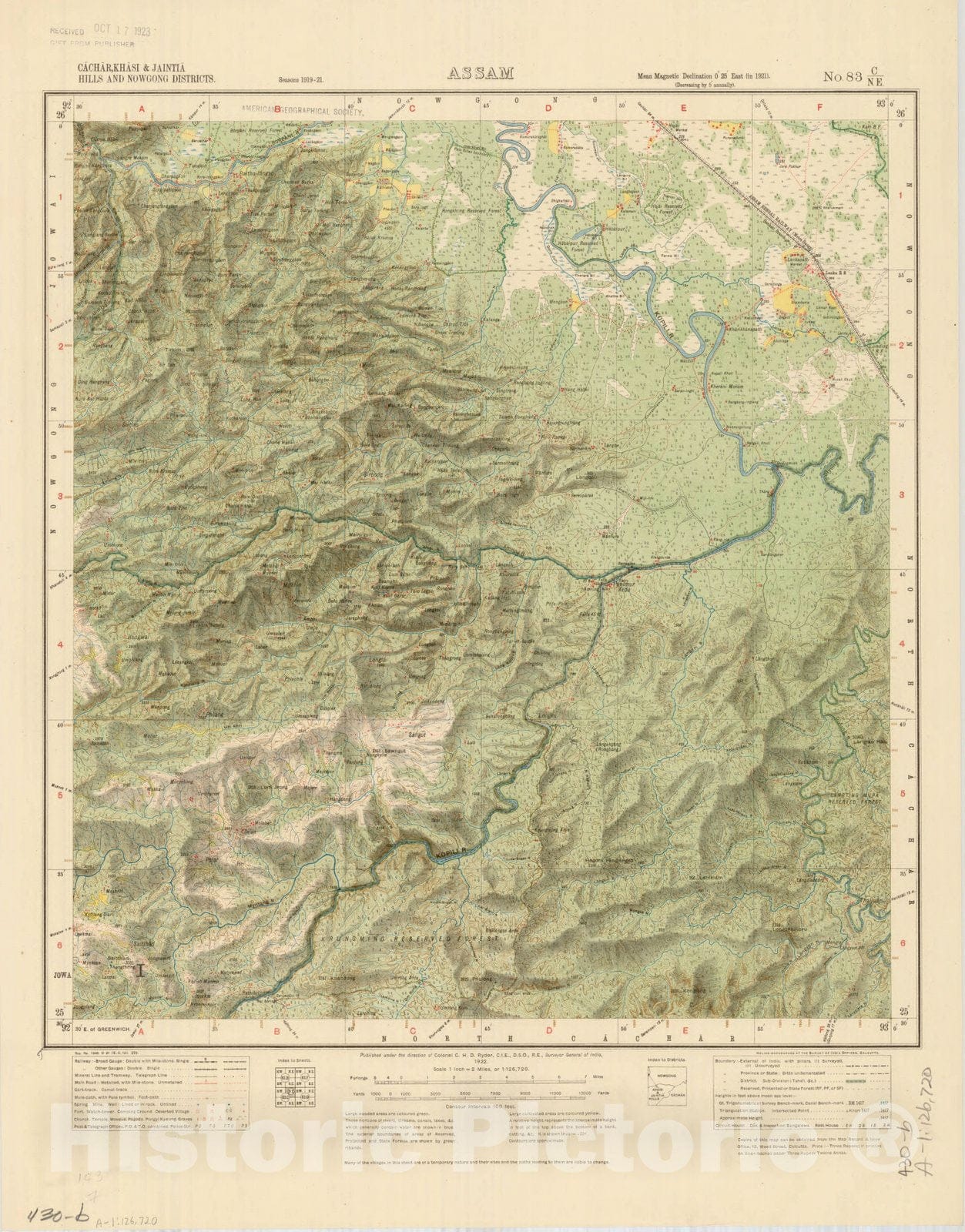 • .Map : Cachar, Khasi & Jaintia Hills and Nowgong Districts, Assam, No. 83 C/N.E. 1922, India and adjacent countries, Antique Vintage Reproduction