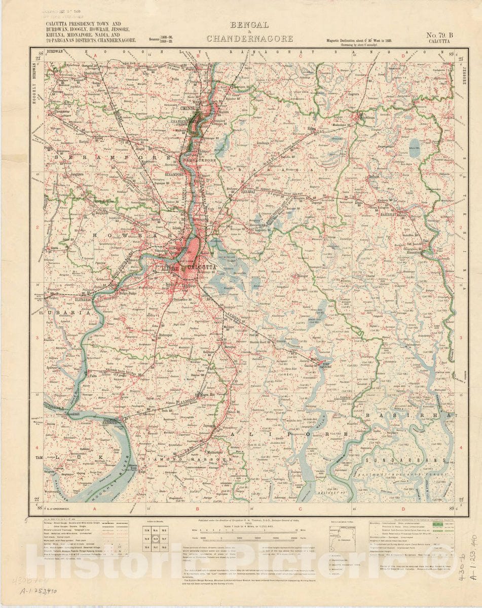 • Map : Calcutta Presidency Town and Burdwan, Hoogly, Howrah, Jessore, Khulna, Midnapore, Nadia, and 24-Parganas Districts, , No. 79 B 1930, India 1:253,440