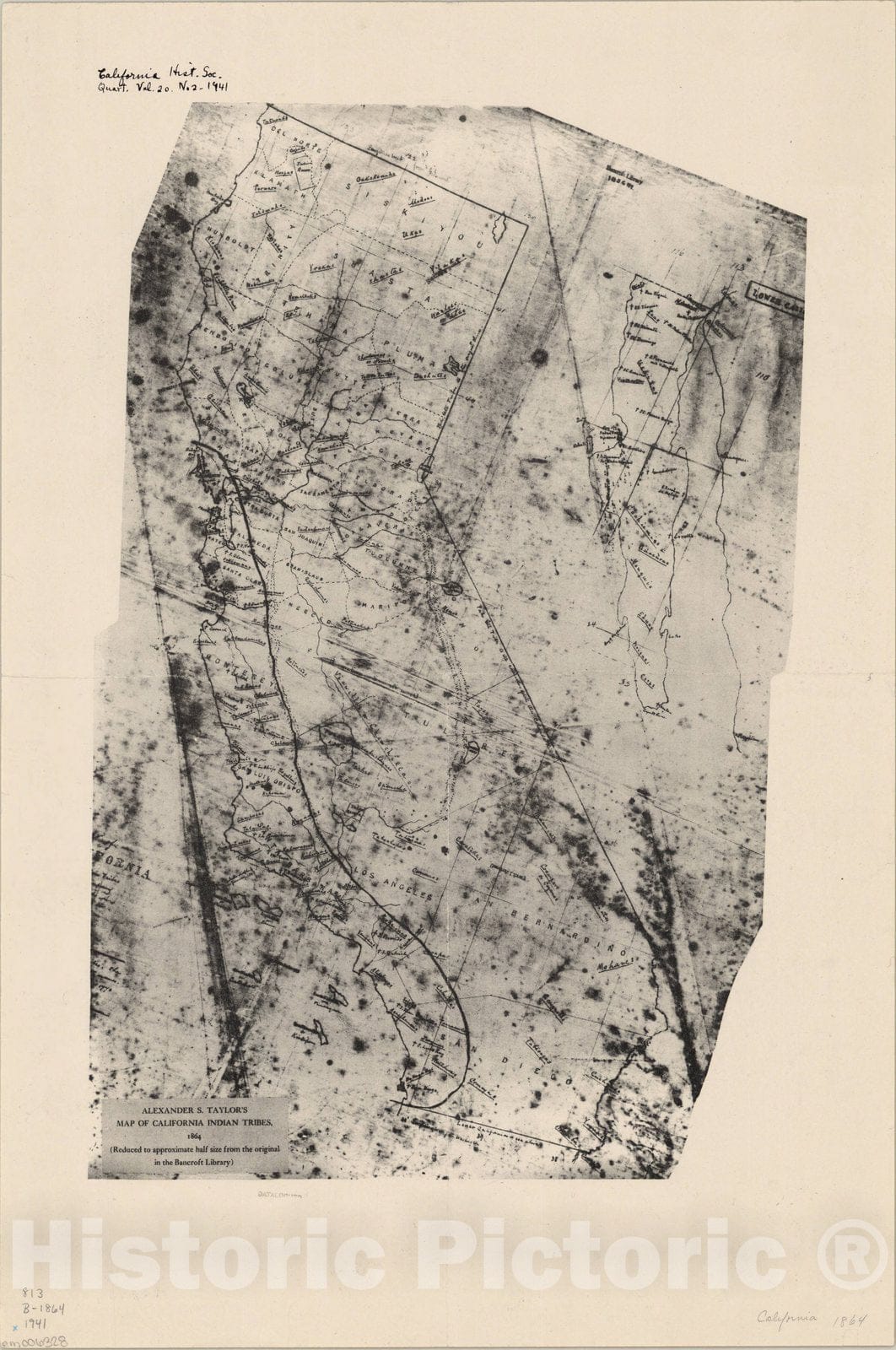 Map : California 1941, Alexander S. Taylor's map of California Indian tribes, 1864, Antique Vintage Reproduction