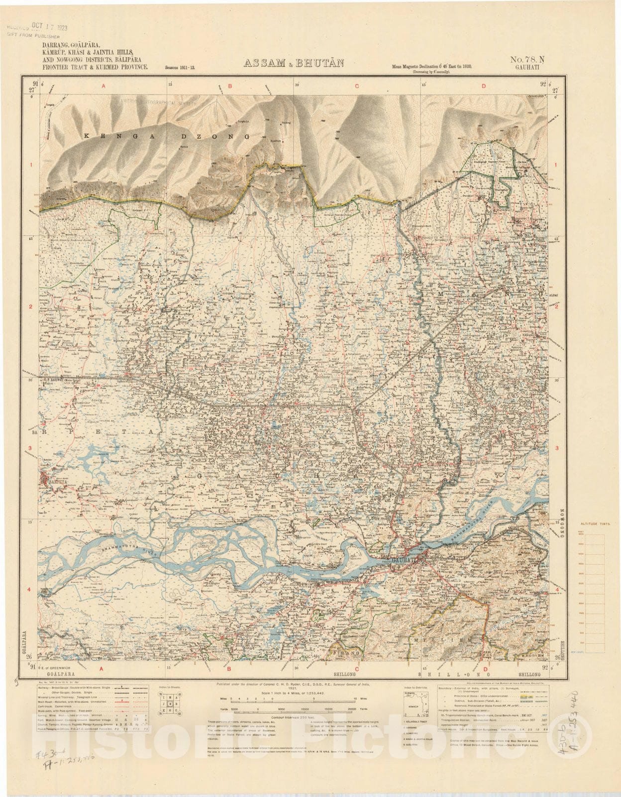 Historic Map : Darrang, Goalpara, Kamrup, Khasi & Jaintia Hills, and Nowgong Districts, Balipara Frontier Tract & Kurmed Province, Assam & Bhutan, No. 78 N 1921 2, India 1:253,440
