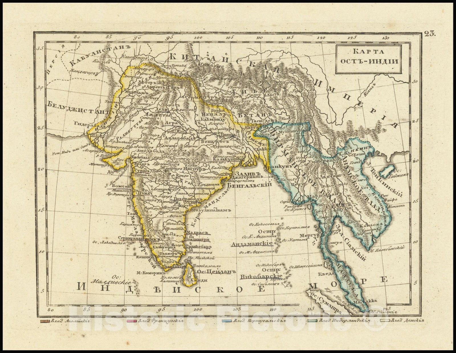 • .Historic Map : Map of East India,????? , 1836, Vintage Wall Art