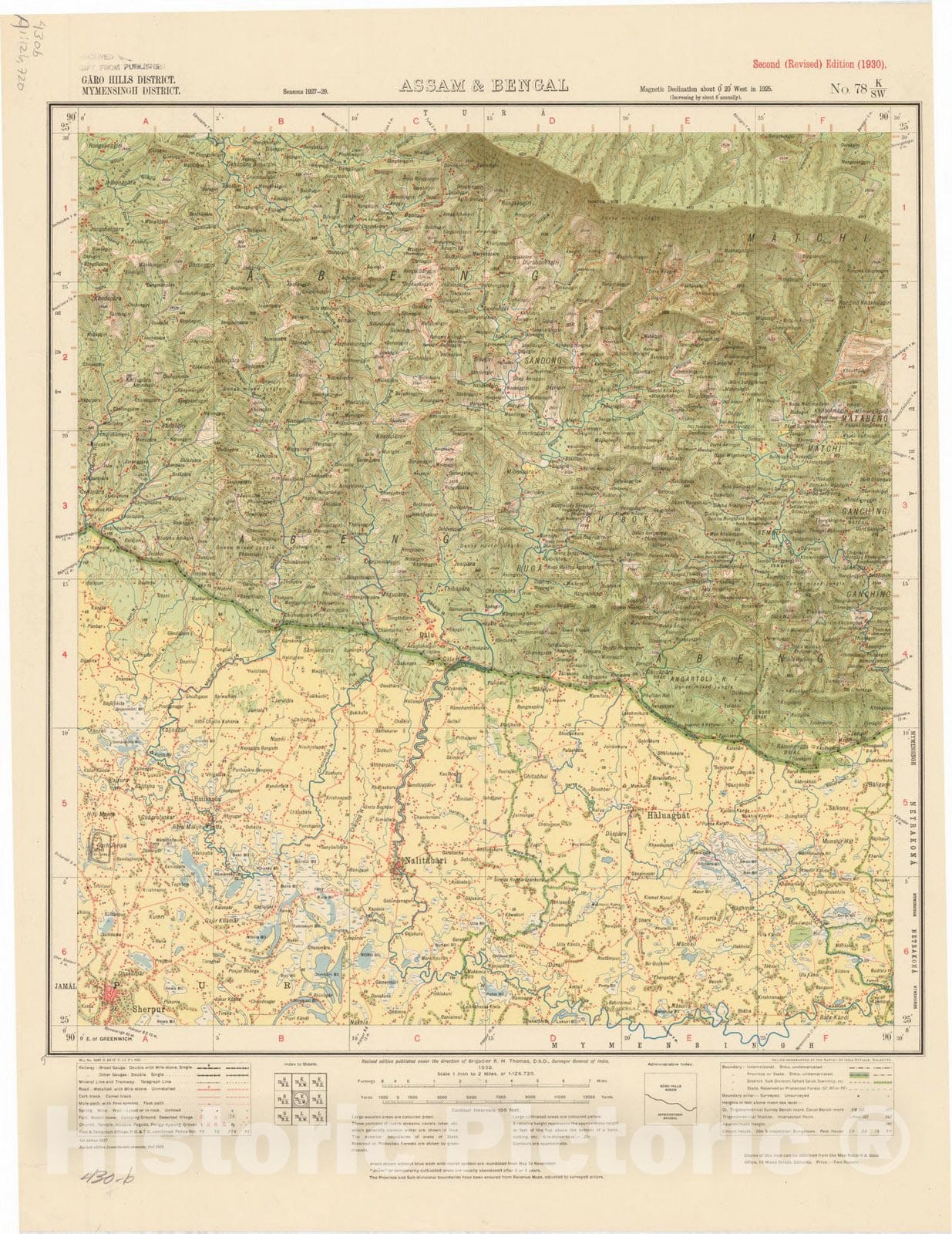 Map : Garo Hills District, Mymensingh District, Assam & Bengal, No. 78 K/S.W. 1930, India and adjacent countries, Antique Vintage Reproduction