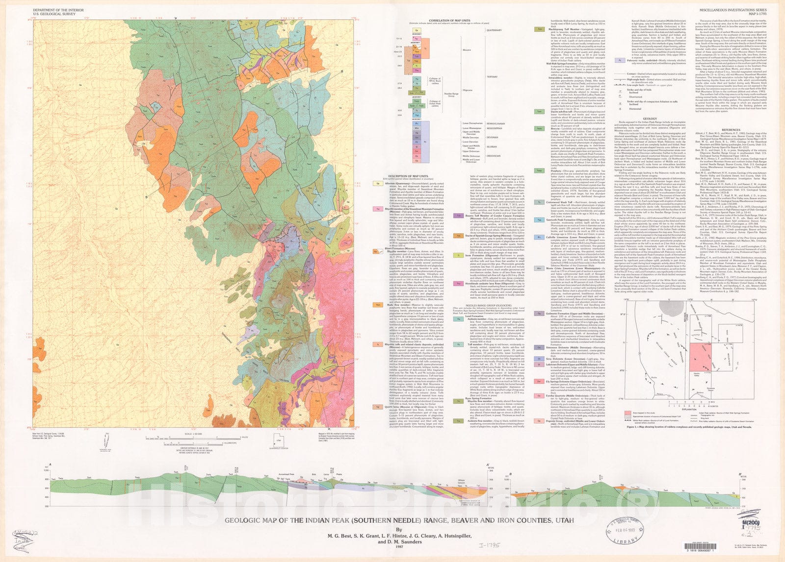 Map : Geologic map of the Indian Peak (southern Needle) Range, Beaver and Iron Counties, Utah, 1987 Cartography Wall Art :