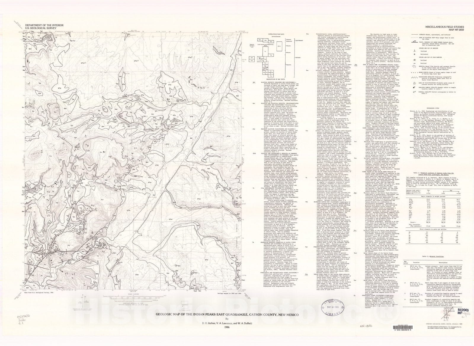 Map : Geologic map of the Indian Peaks East quadrangle, Catron County, New Mexico, 1986 Cartography Wall Art :