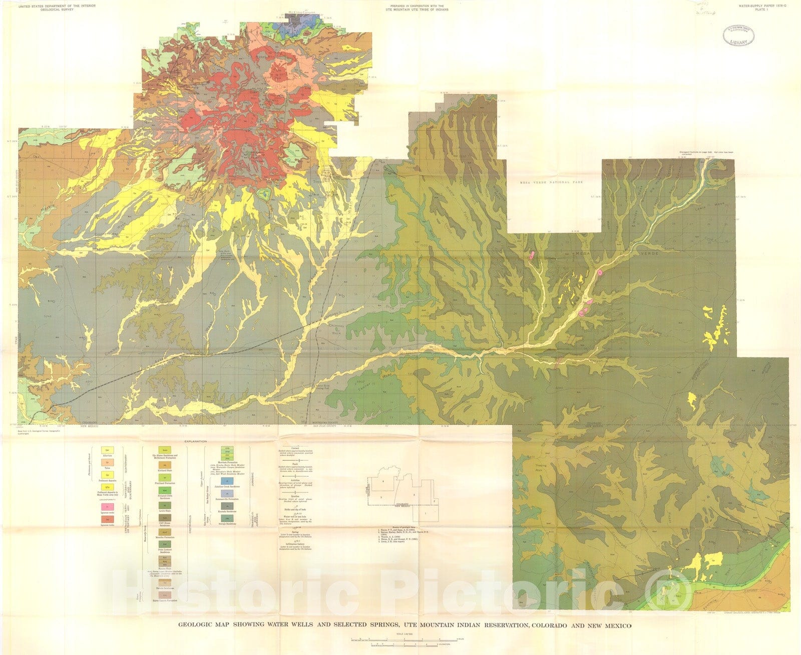 • .Map : Geology and availability of ground water on the Ute Mountain Indian Reservation, Colorado and New Mexico, 1966 Cartography Wall Art :