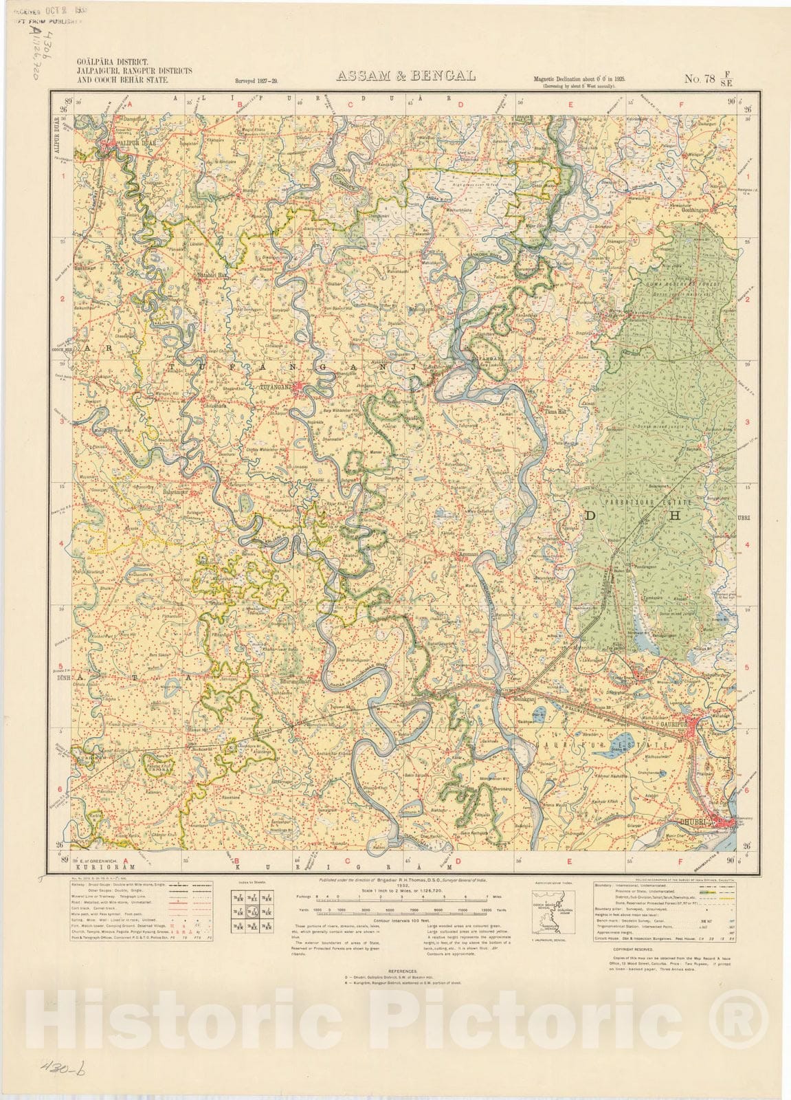 Historic Map : Goalpara District, Jalpaiguri, Rangpur Districts and Cooch Behar State, Assam & Bengal, No. 78 F/S.E. 1932, India and adjacent countries, Antique Vintage Reproduction