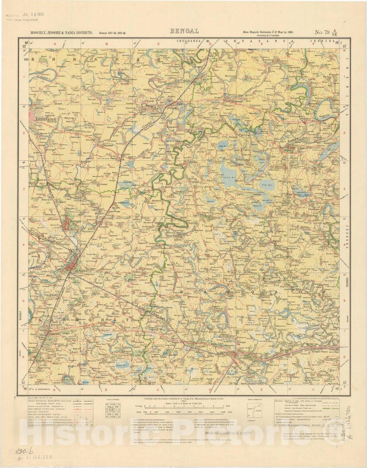 Map : Hooghly, Jessore & Nadia Districts, Bengal, No. 79 A/S.E. 1924, India and adjacent countries, Antique Vintage Reproduction